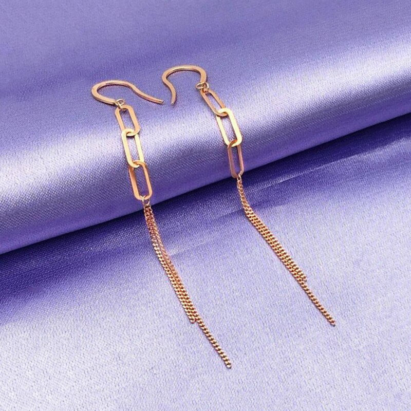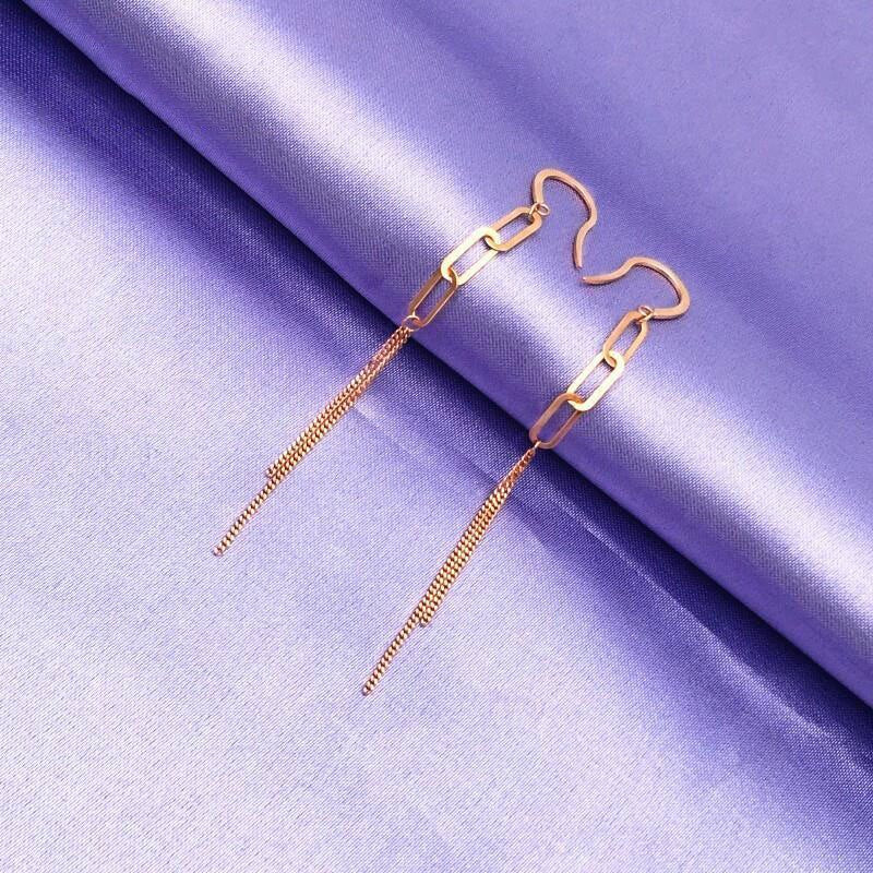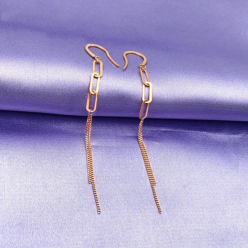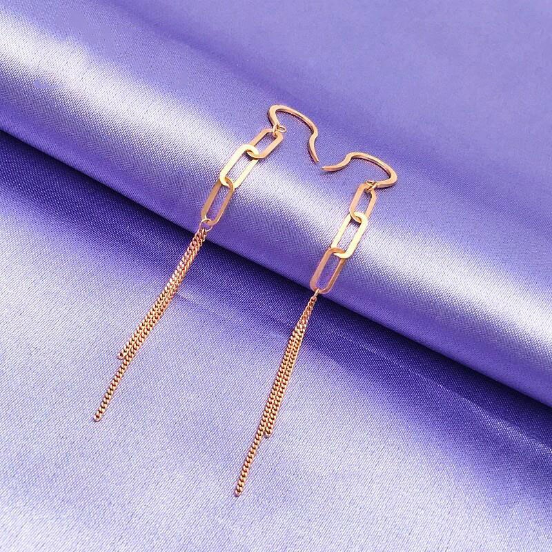 Drop Earrings-585 purple gold long chain earrings for women 14K rose gold new soft chain tassel exquisite wedding jewelry accessories