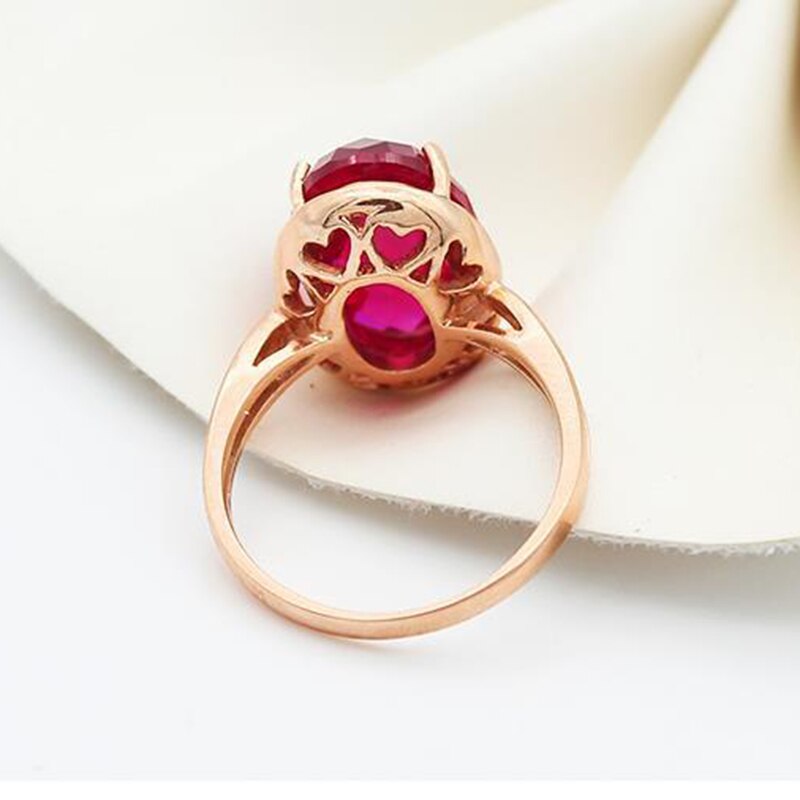 585 Purple Gold New 14K Rose Gold Inlaid Four-Claw Oval Ruby Rings For Women