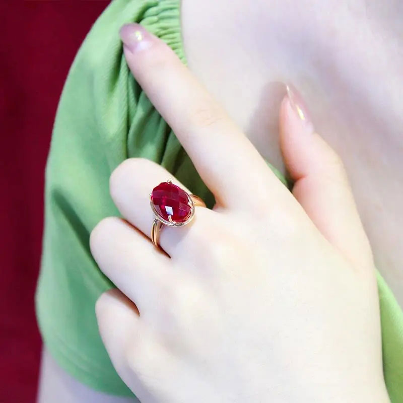 Cocktail Ring-585 Purple Gold New 14K Rose Gold Inlaid Four-Claw Oval Ruby Rings For Women Adjustable Wedding Engagement Luxury Jewelry