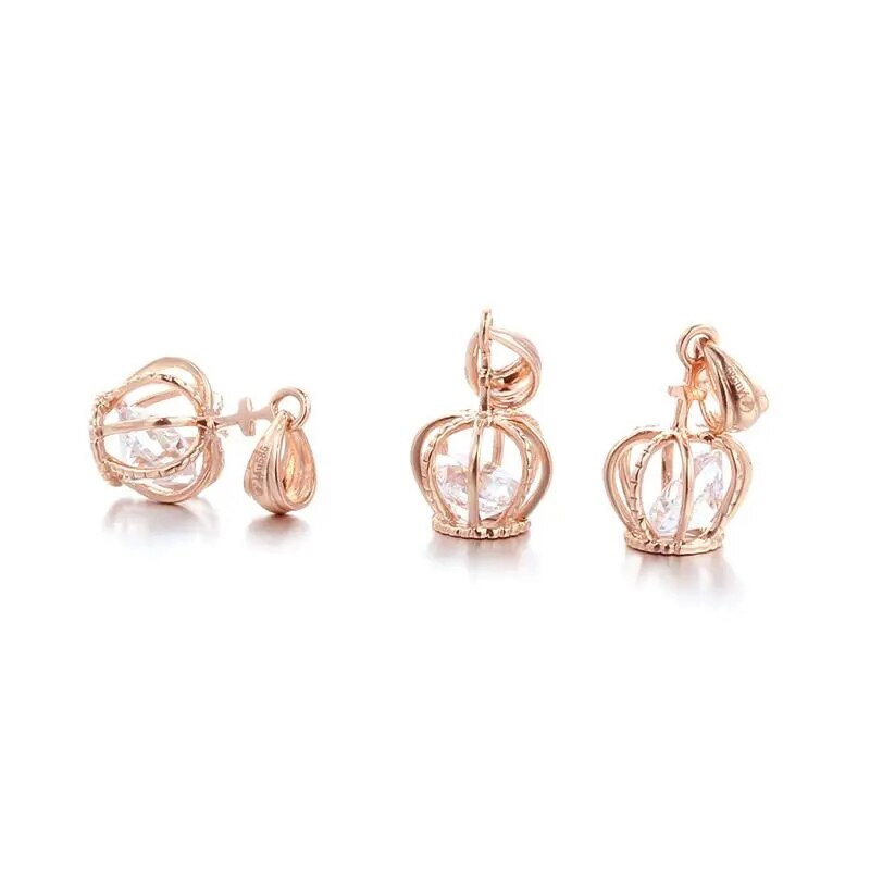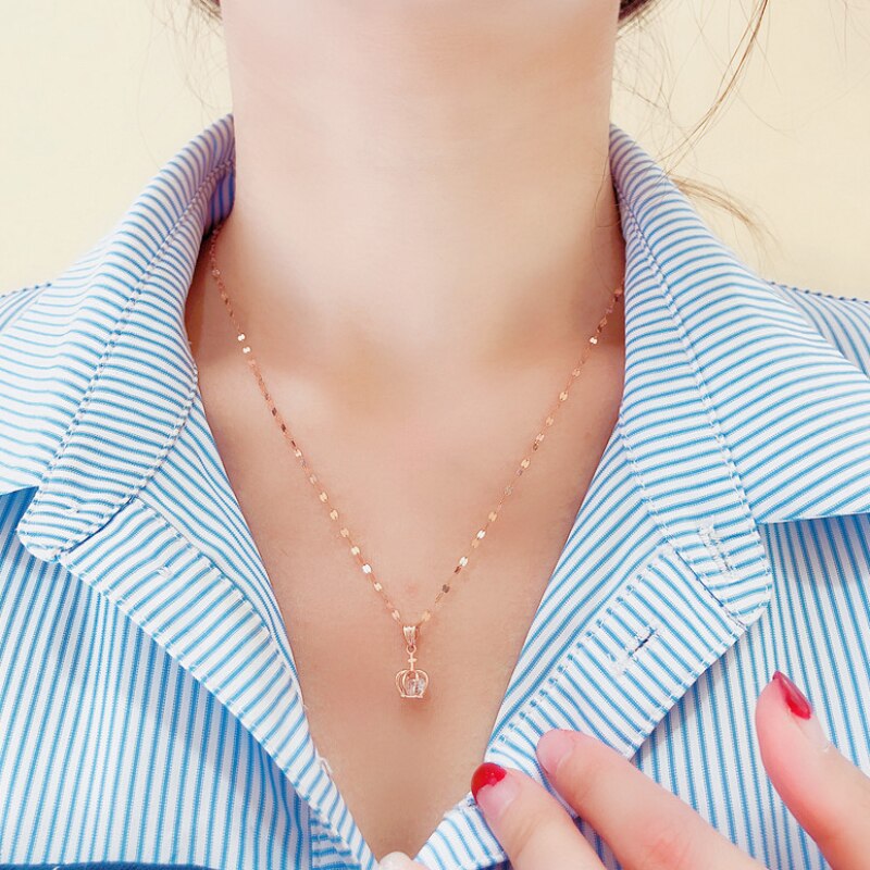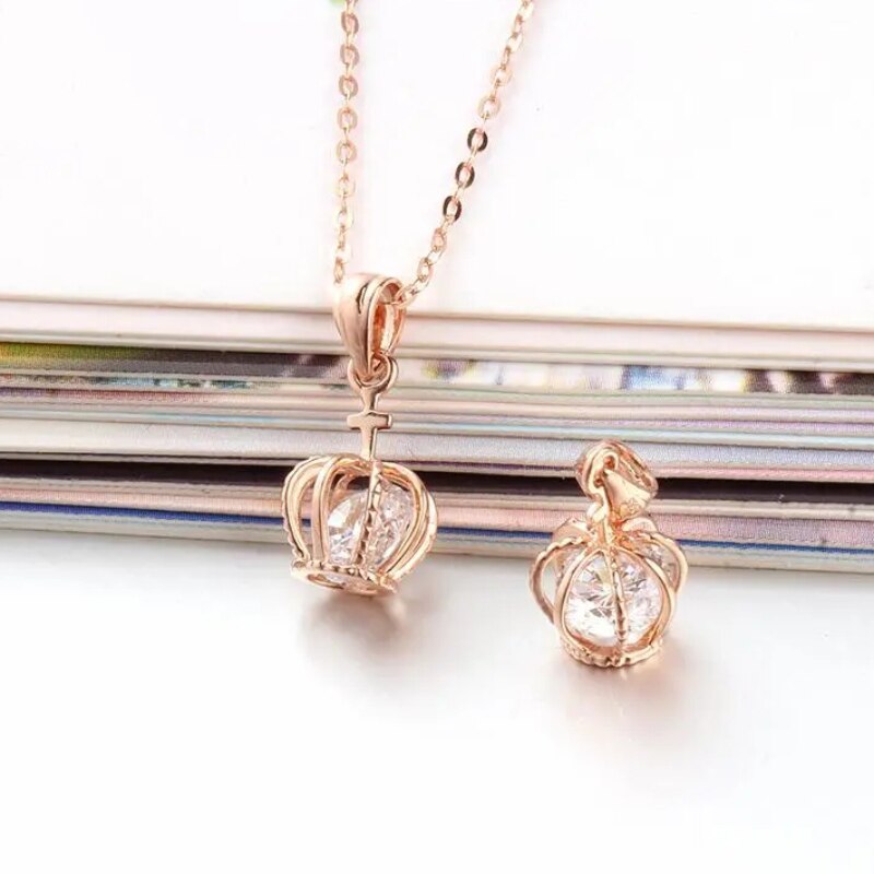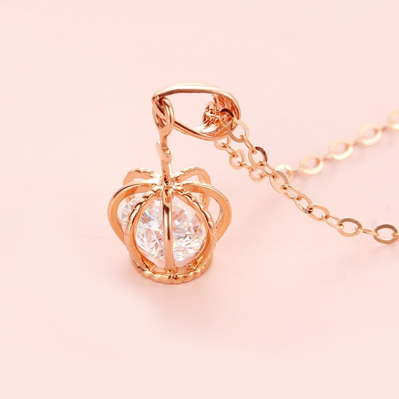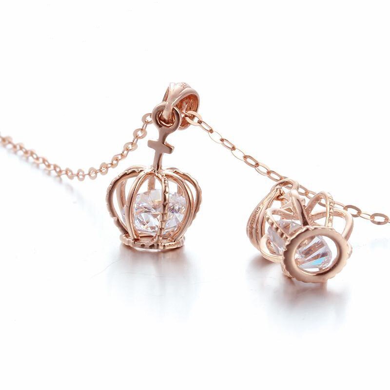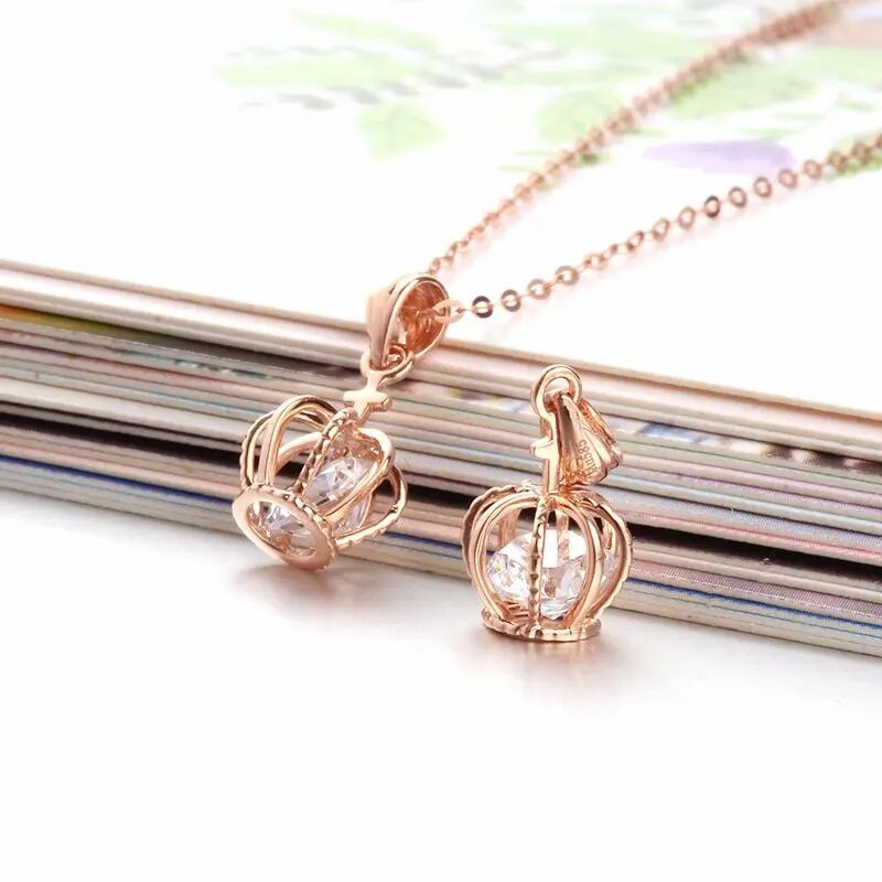 Chains Necklaces-585 purple gold plated 14K rose gold crystal crown neckalce for woman bright romantic charm wedding jewelry for girlfriend