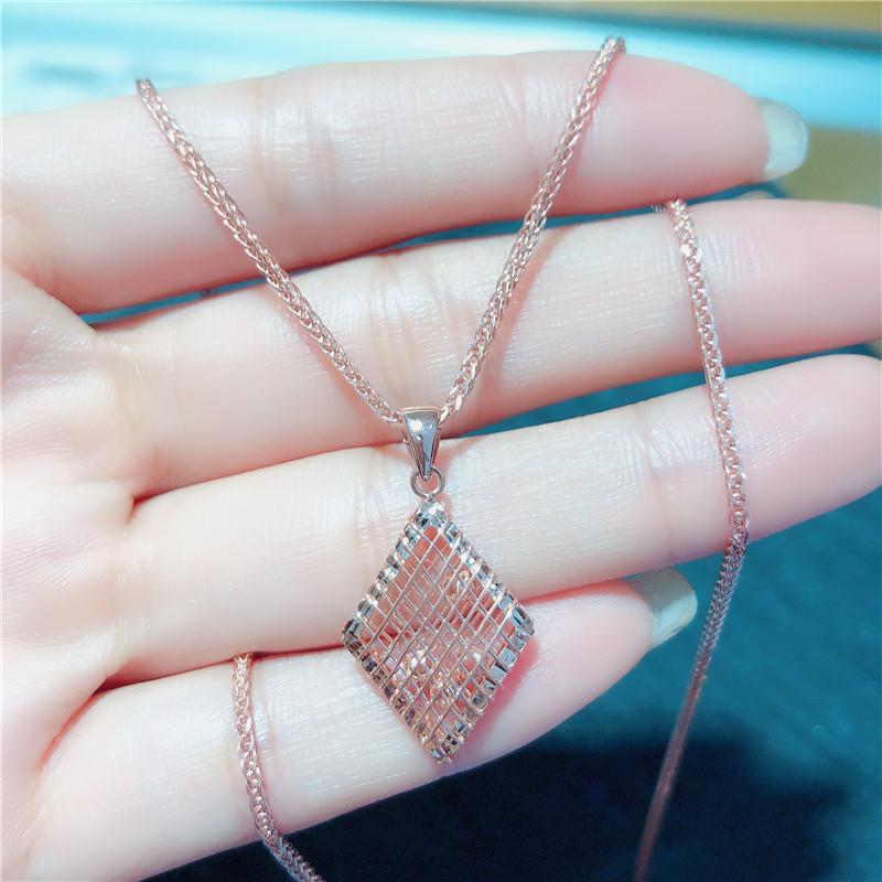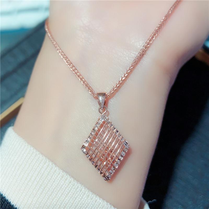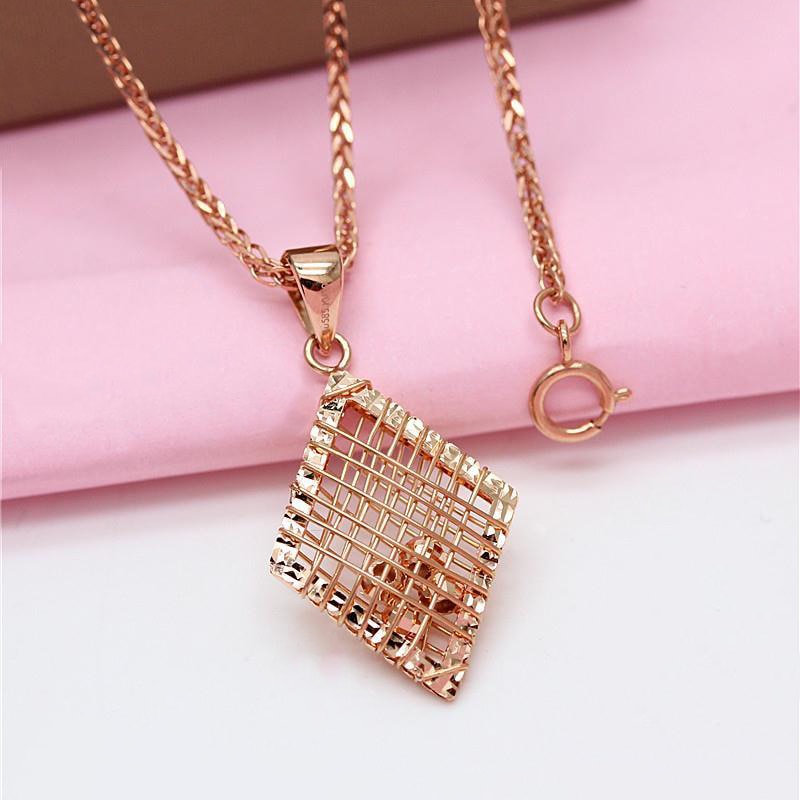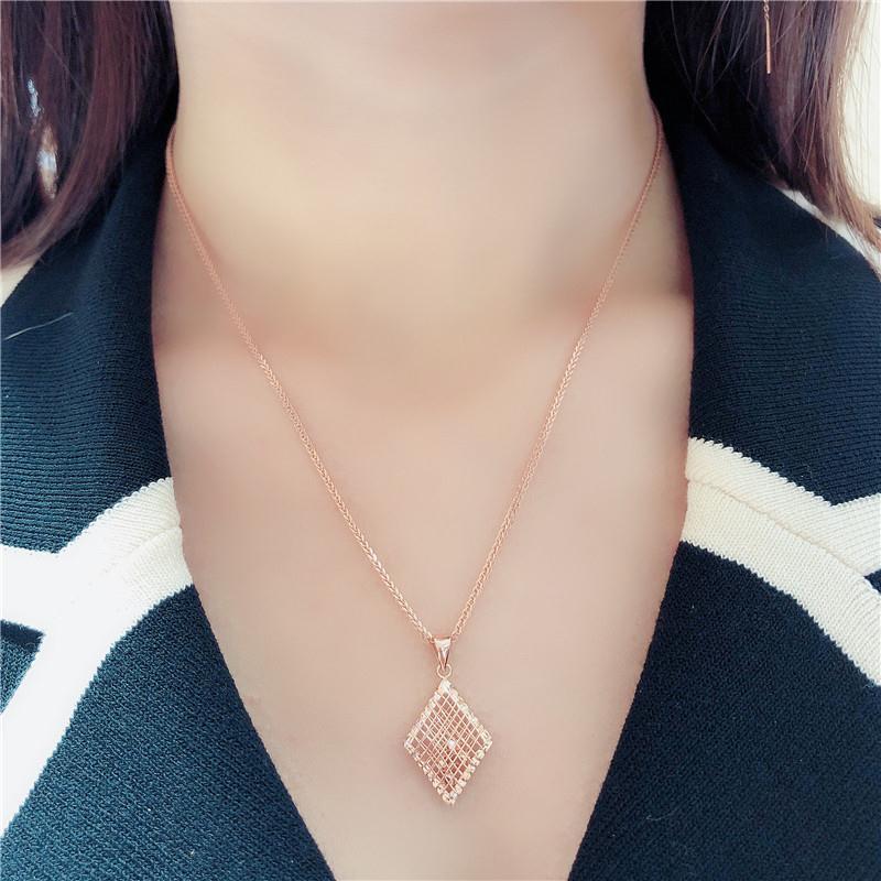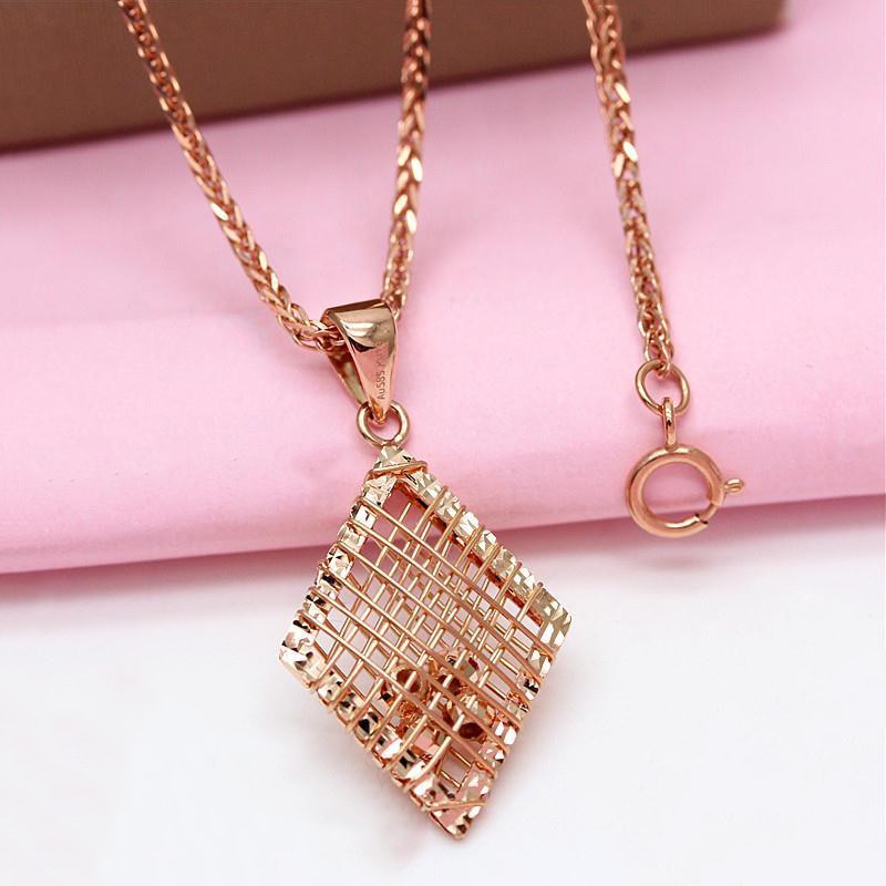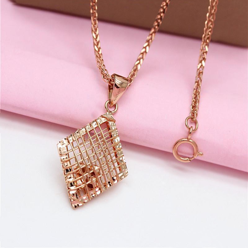Chains Necklaces-585 purple gold plated 14K rose rhombus type hollow ball pendant romantic charm creative jewelry wedding neckalce for women