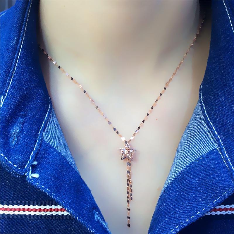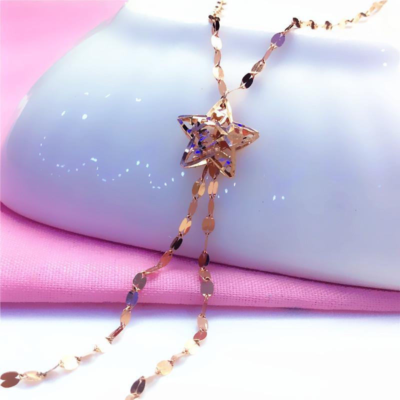 Chains Necklaces-585 Purple Gold Star Tassel Chains Necklace Beautifully Plated 14k Rose Gold Sweet Glamour Engagement Women's Jewelry