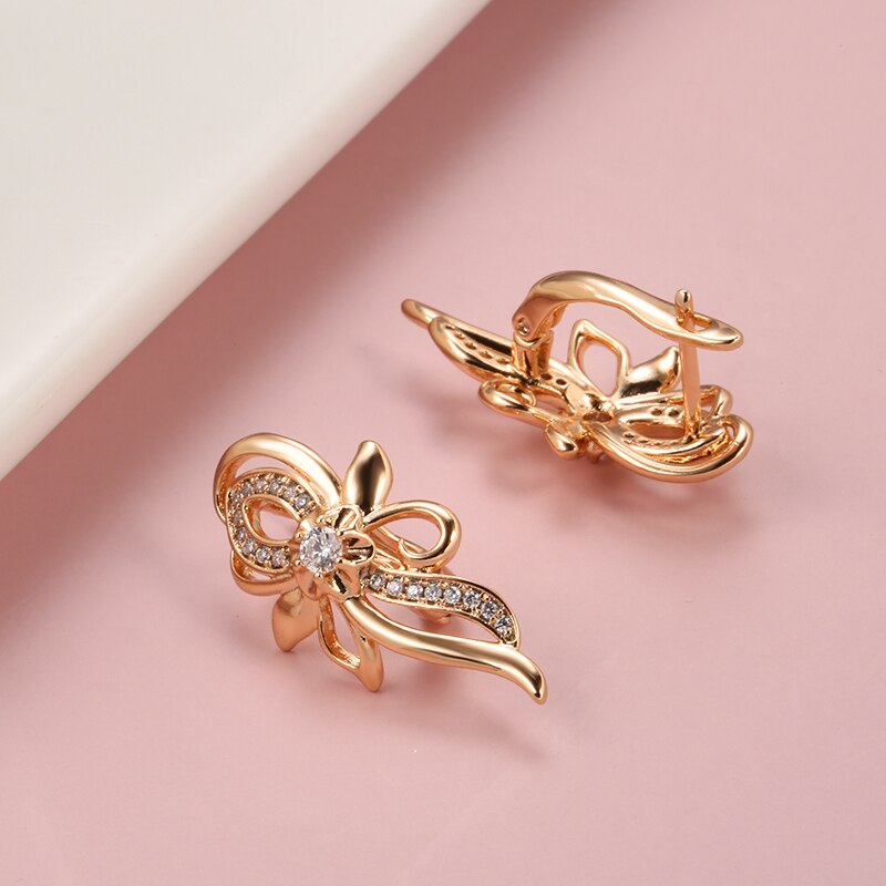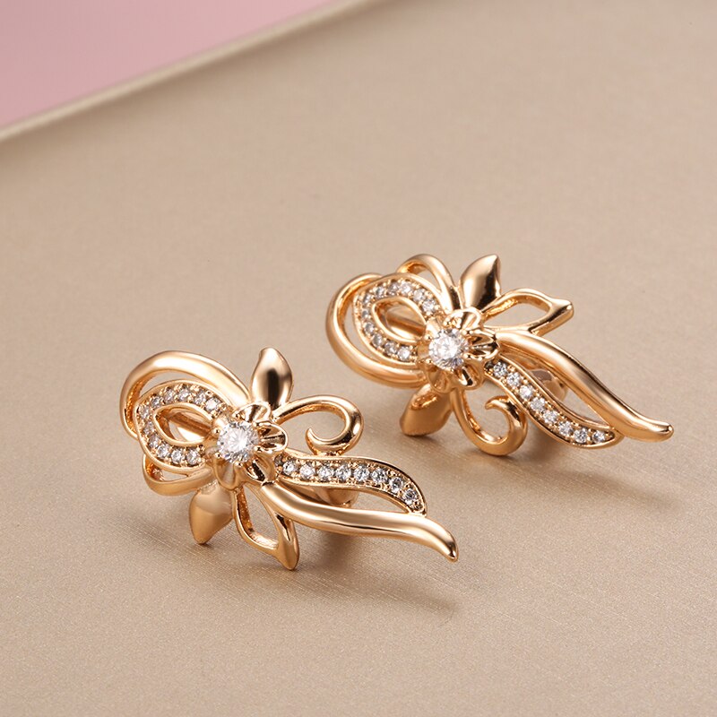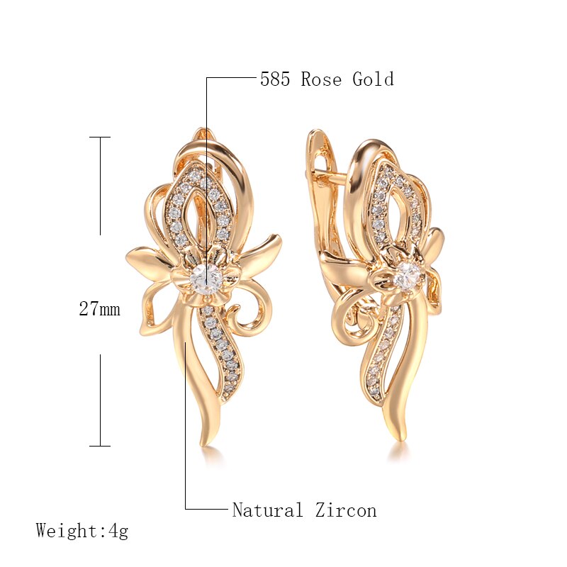 585 Gold Jewelry-585 Rose Gold Clip Earrings Natural Cubic Zircon Hearts and Arrows Cut Hanging Ear Handmade Flower Party Jewelry Drop Earrings
