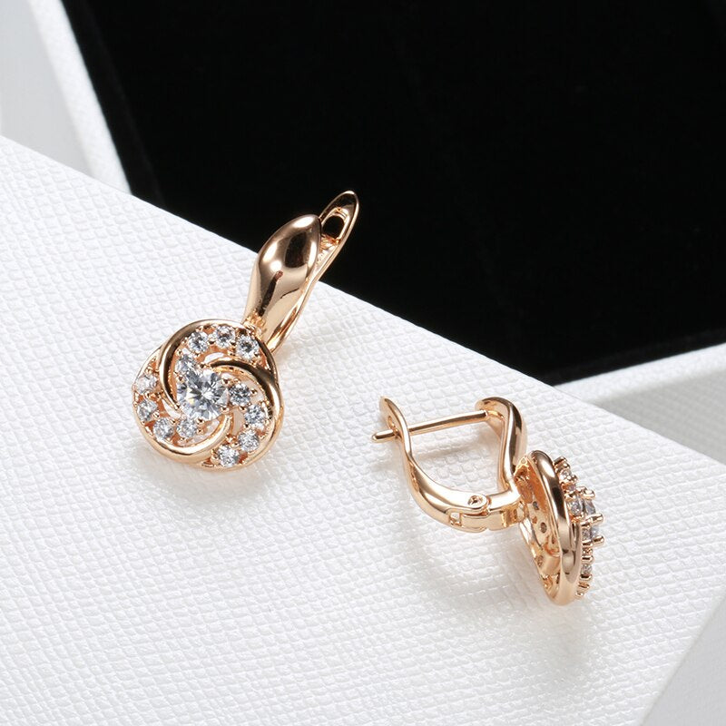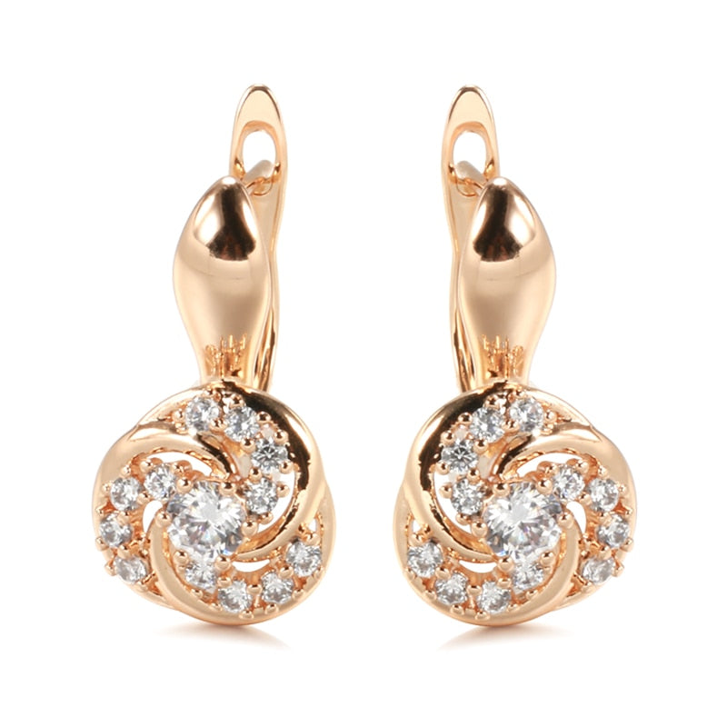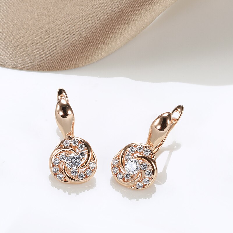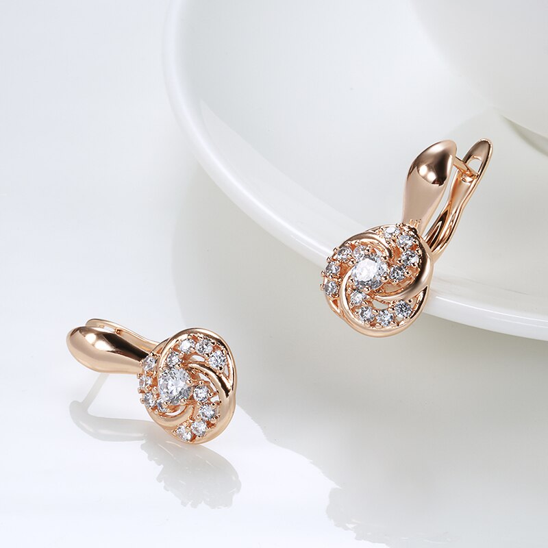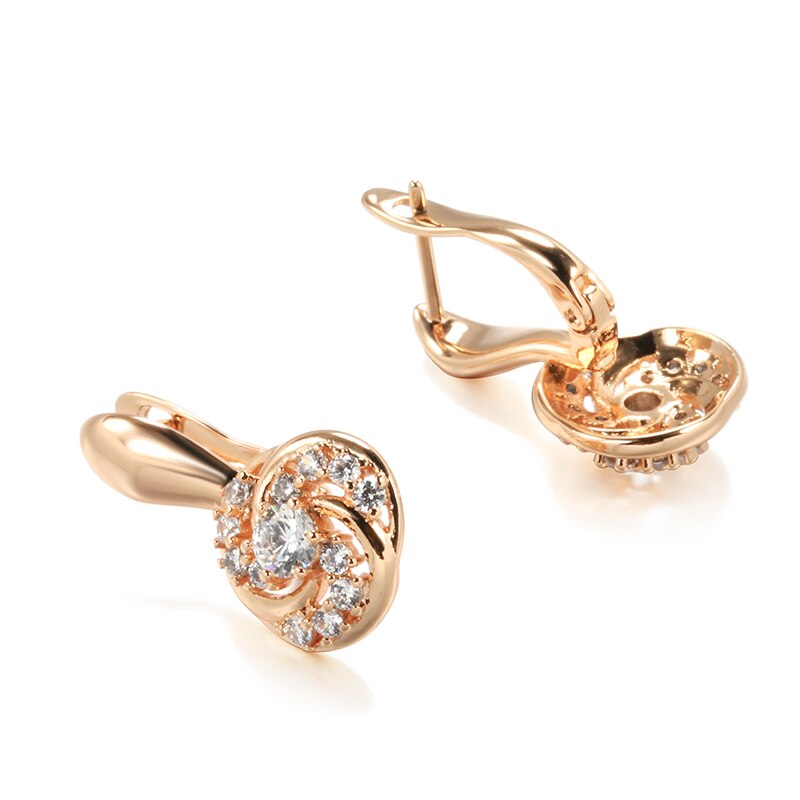 585 Gold Jewelry-585 Rose Gold Clip Earrings for Women Elegant Curve Hollow Around Zircon Golden Earrings Party Engagement Fine Jewelry Earrings