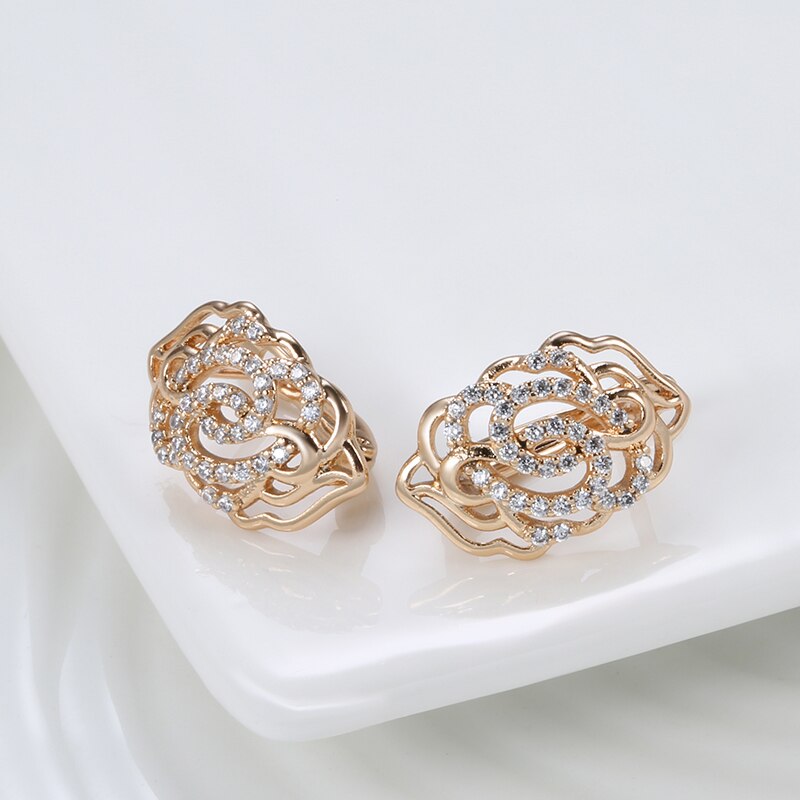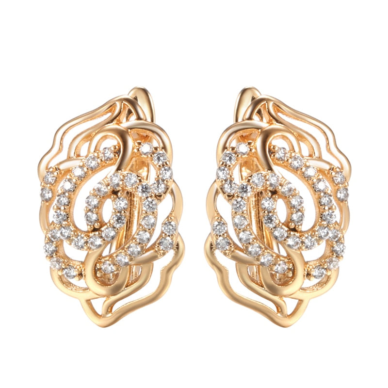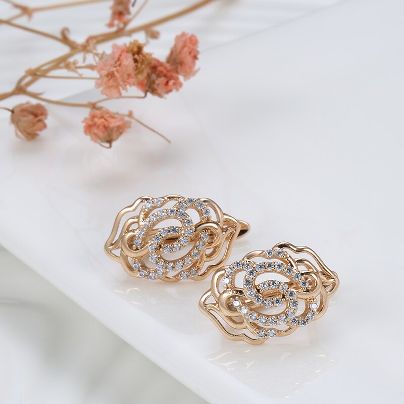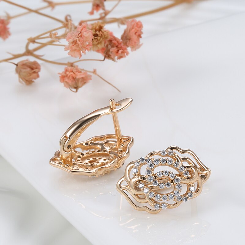 585 Gold Jewelry-585 Rose Gold Earrings Spain Embossed Vintage Pattern Piercing Pendiente Micro CZ Zircons Light Luxury Party Summer Fine Jewelry