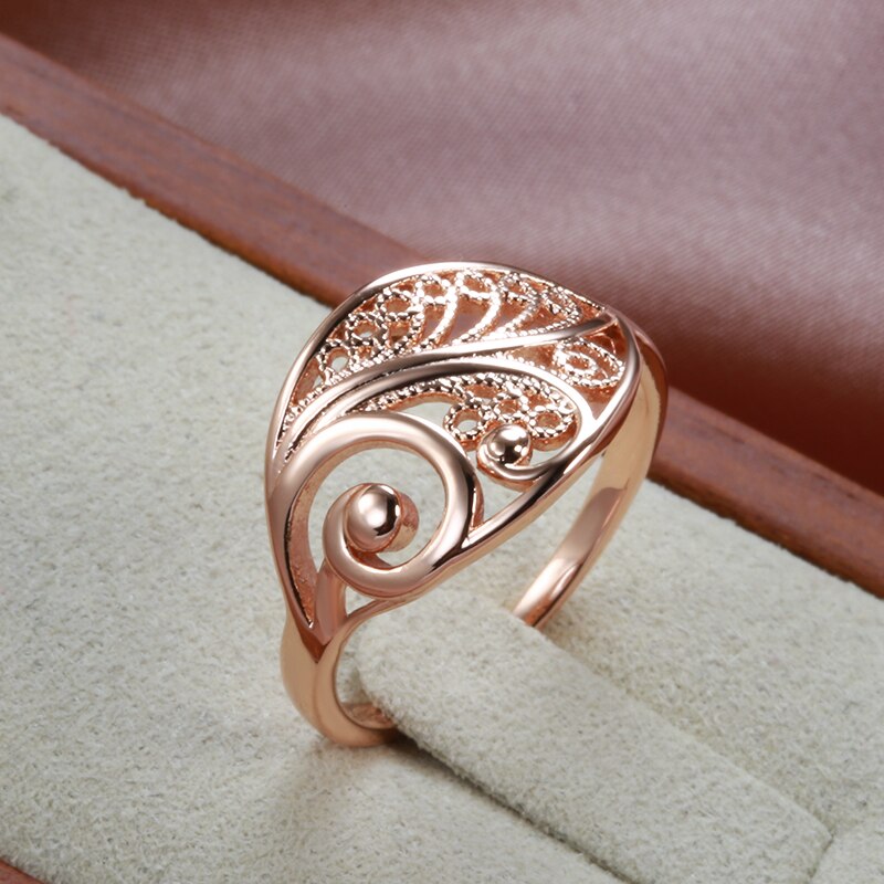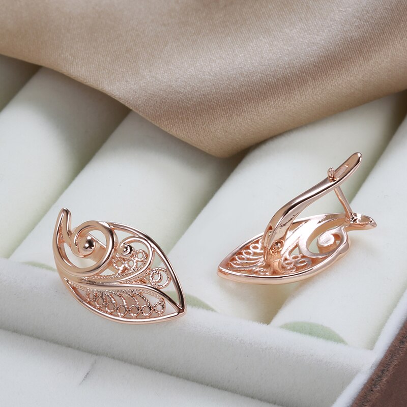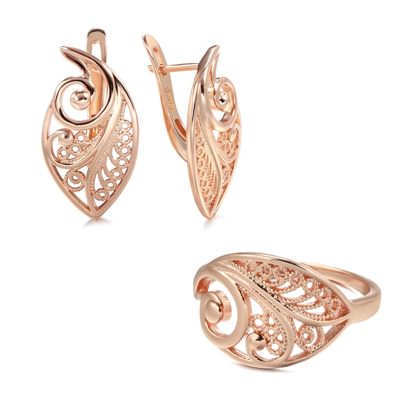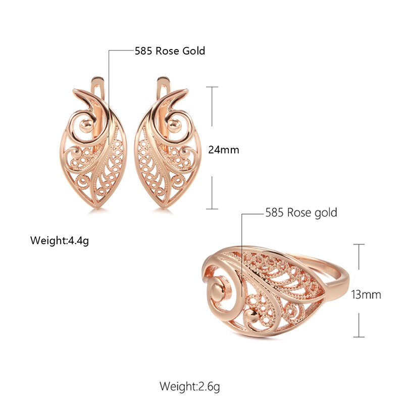 585 Gold Jewelry-Hot Fashion Ethnic Bride Wedding Jewelry Sets 585 Rose Gold Glossy Unusual Hollow Flower Earrings Rings Sets for Women