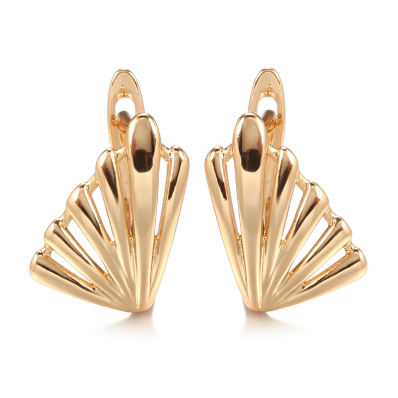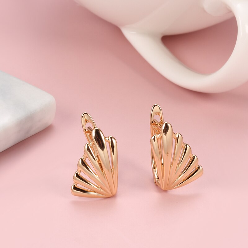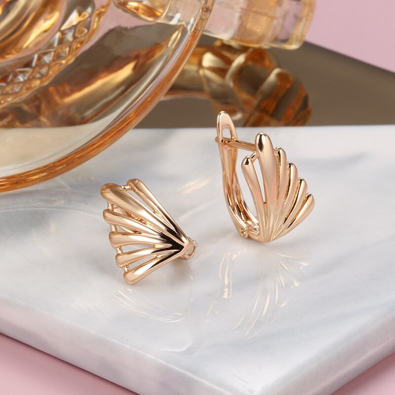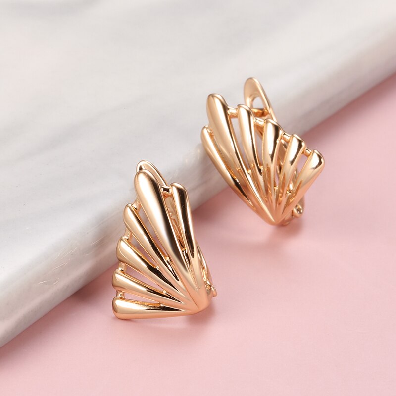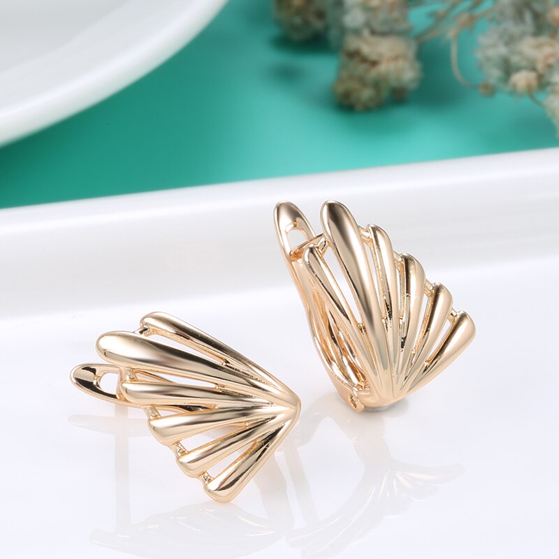 585 Gold Jewelry-585 Rose Gold Plume Shell Earring Fashion Glossy Hollow Clip Earrings for Women Ethnic Wedding Fine Jewelry Symmetrical earrings
