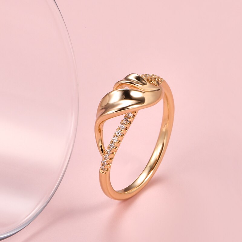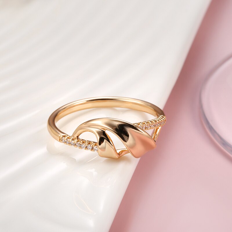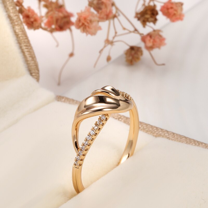 585 Gold Jewelry-585 Rose Gold White Zircon Rings Hearts and Arrows Stone Cut Ribbon Hollow Single Row Diamond Party Fashion Fine Jewelry Rings