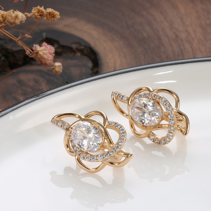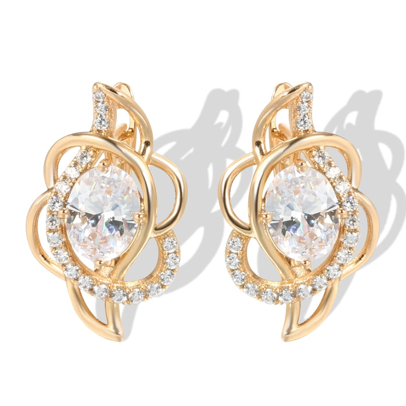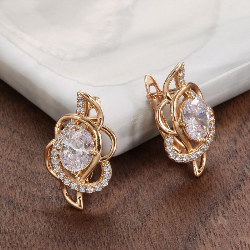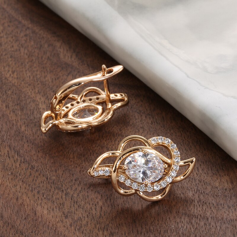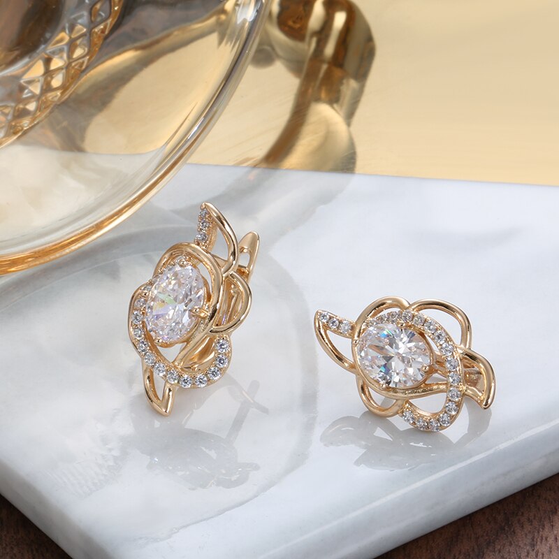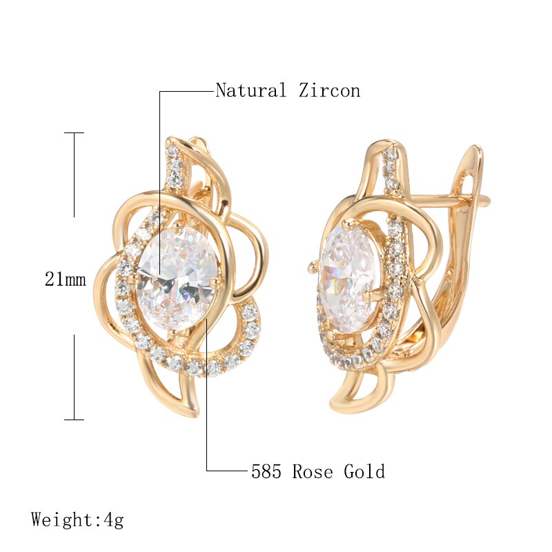 585 Gold Jewelry-585 Rose Gold Zircon Earrings Heart & Arrow Stones CZ Rose Carve Piercing Loops Drop Earrings Party Jewelry Fine Wedding Earring