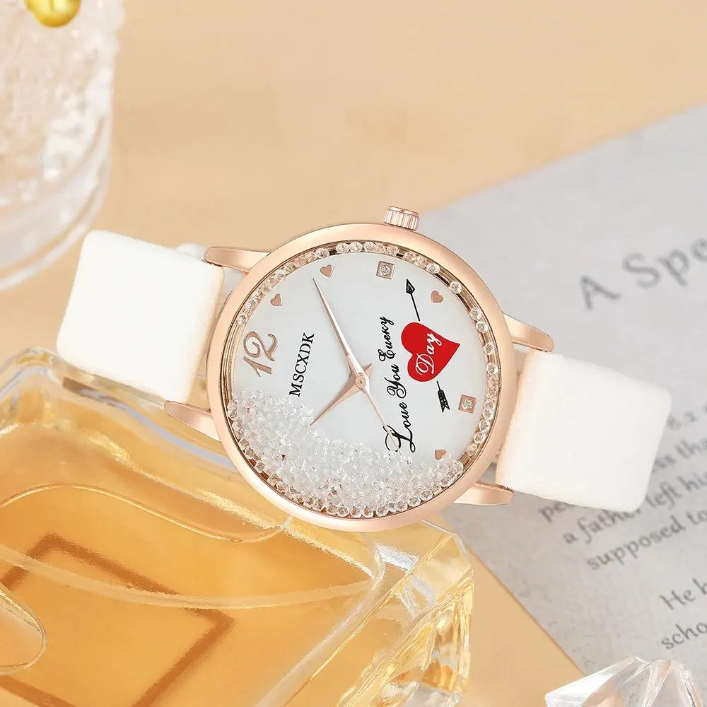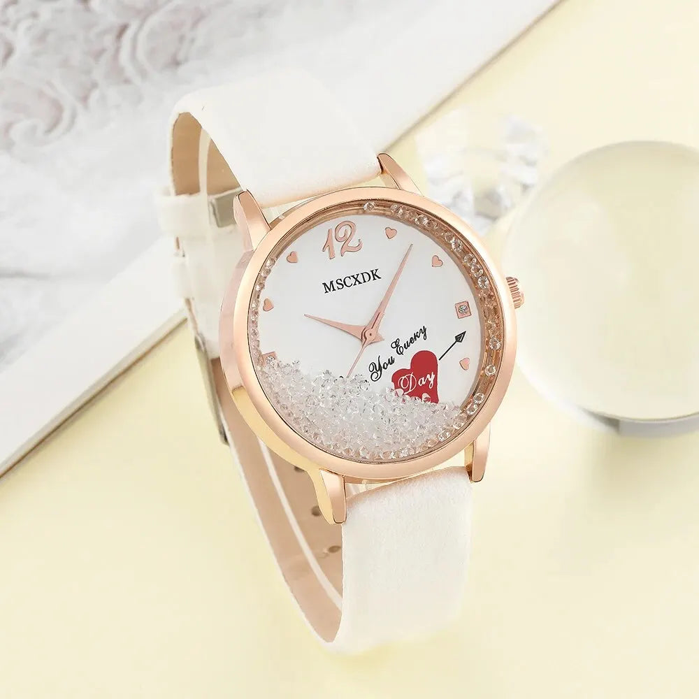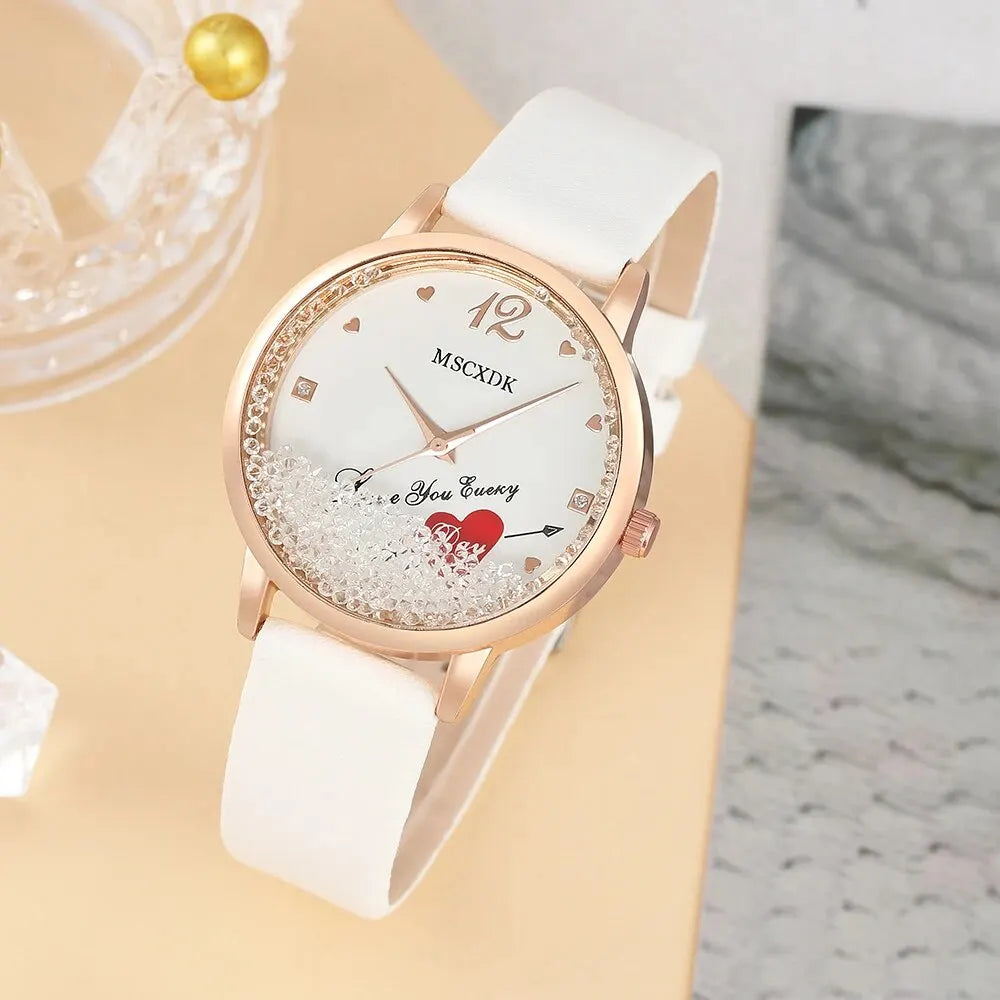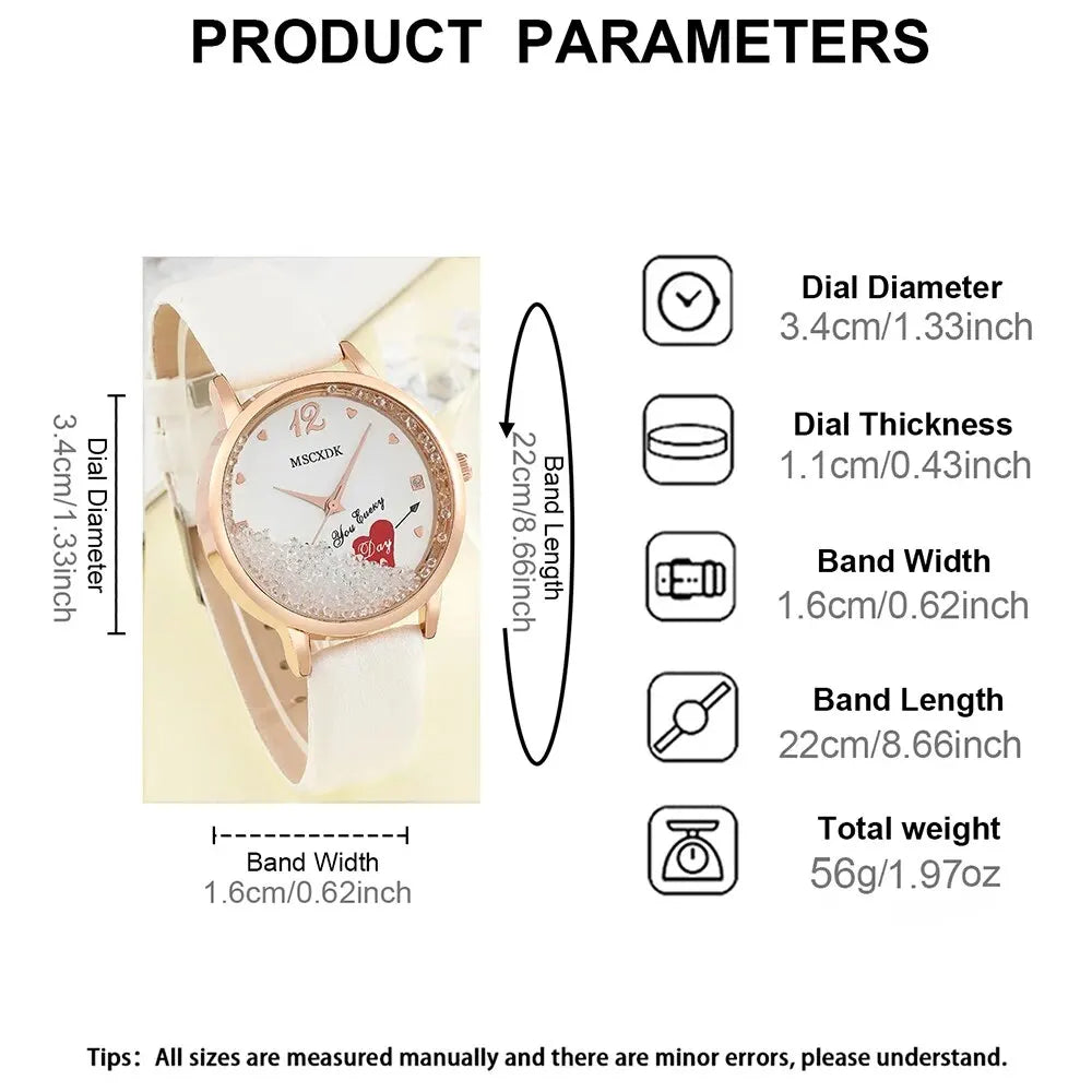5PCS Set Women's Watch Elegant Leather Analog Quartz Wrist Watch & Necklace Earrings Bracelet Jewelry Set Dress Clock Montre Fem