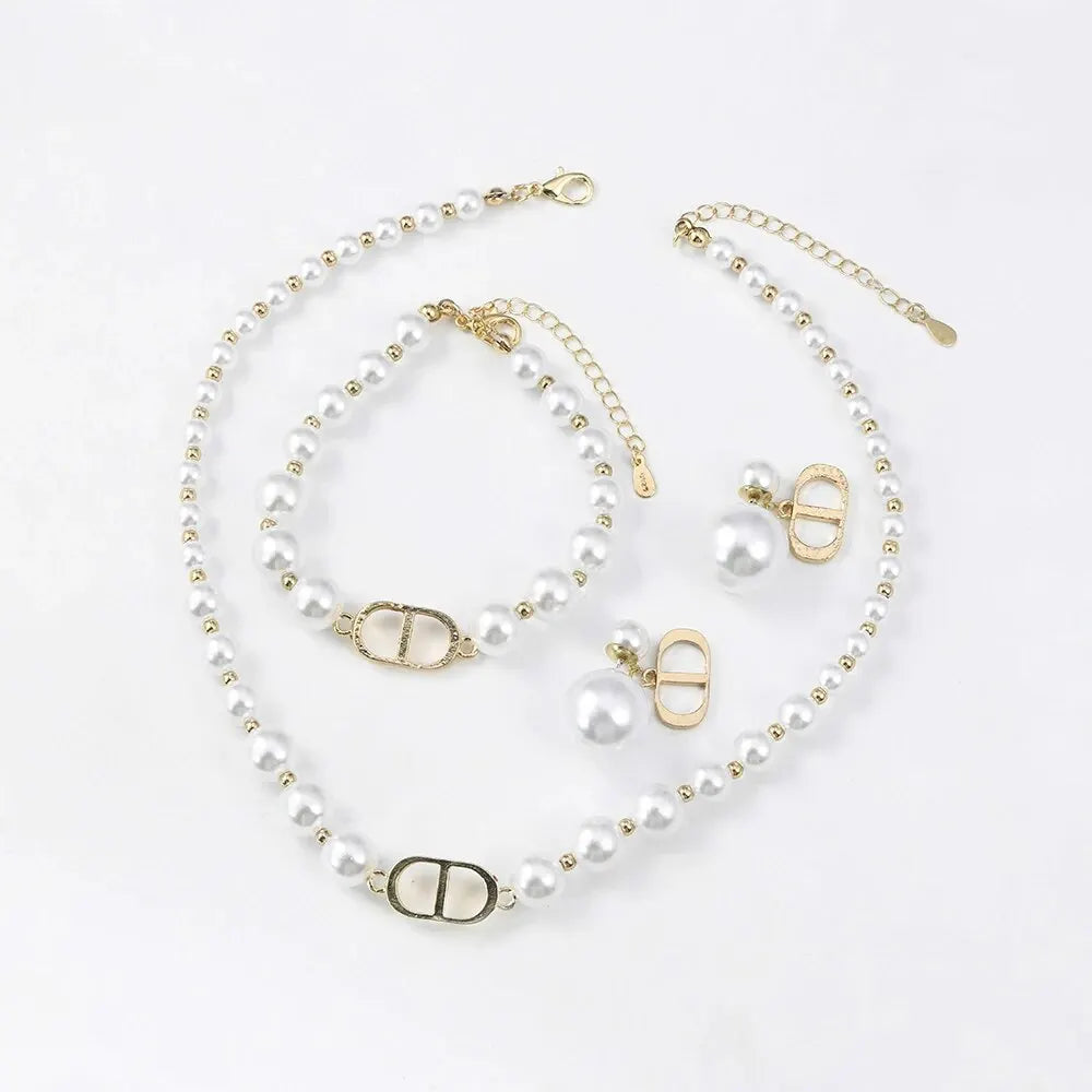 5PCS Leather Analog Quartz Wrist Watch & Necklace Earrings Bracelet Jewelry Set