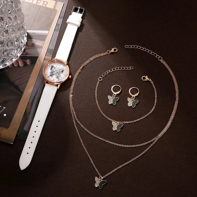 • 5PCs set :Get more value for your money with this 5-piece set that includes a watch, butterfly necklace, earrings, and bracelet.