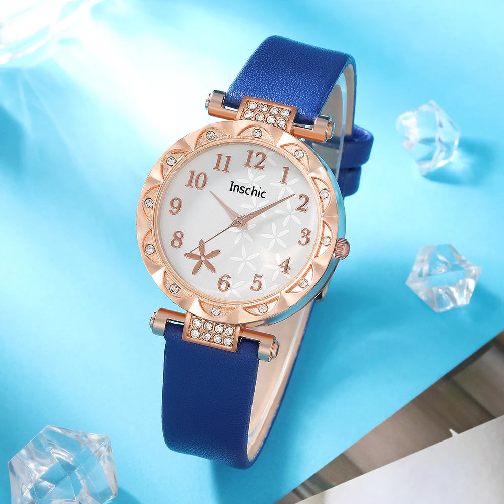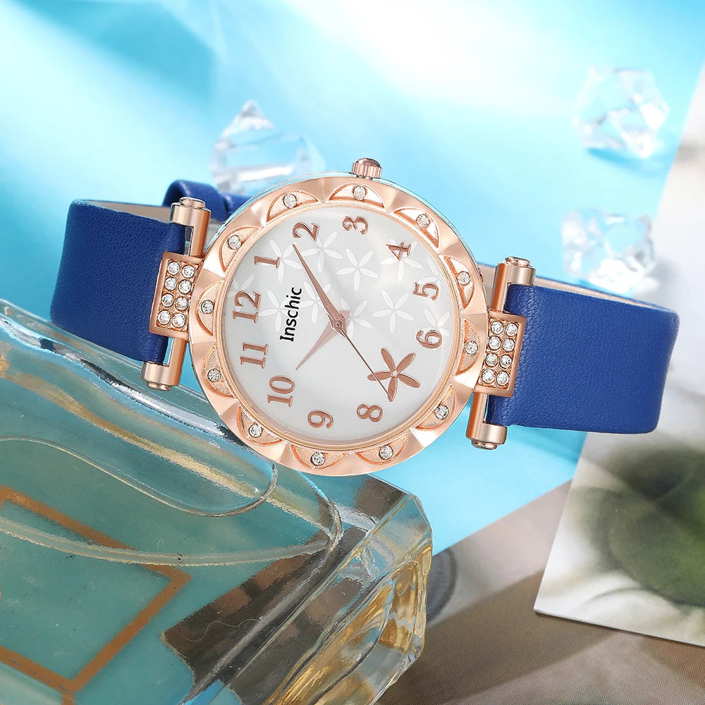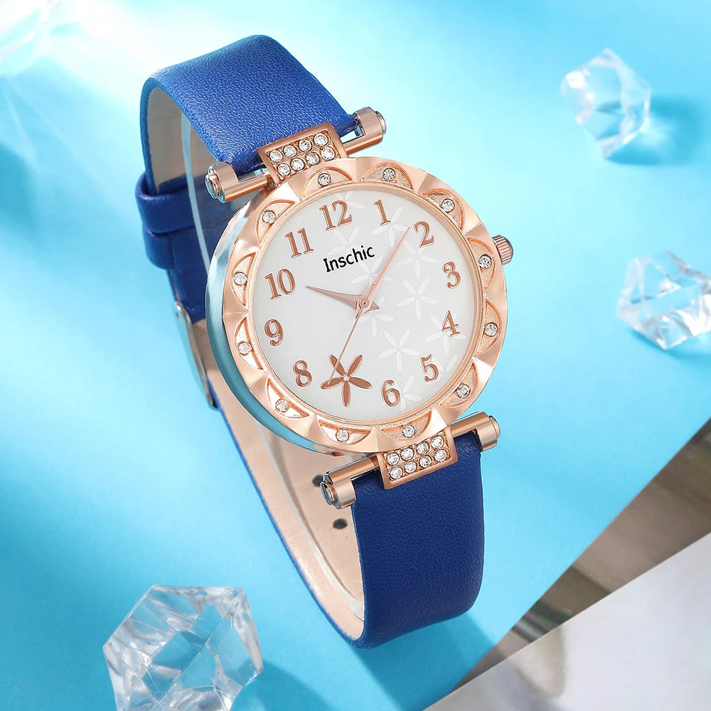 5pcs WOMEN'S Watch Set All Fashion Casual Quartz Watch Ring Necklace Earrings Watch Set