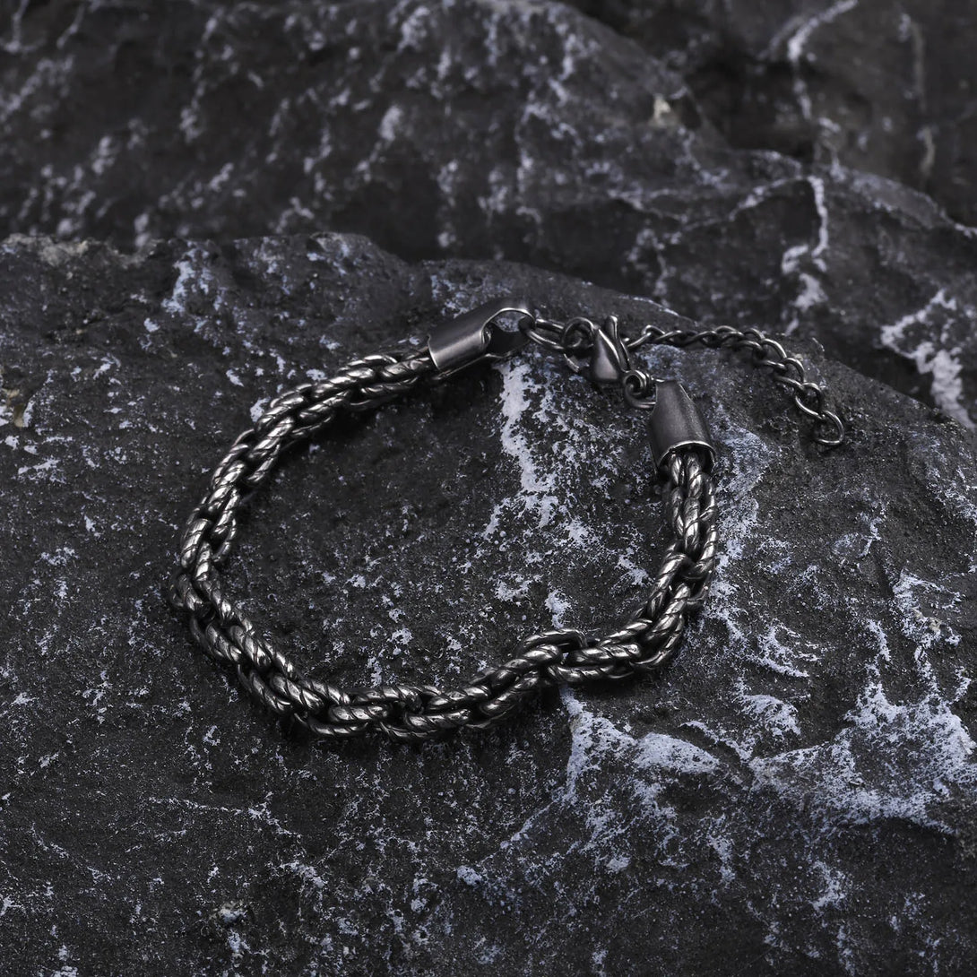 6mm Twisted Chain Bracelets for Men Boys,Vintage Grey Color Wristband, Adjustable Links Jewelry