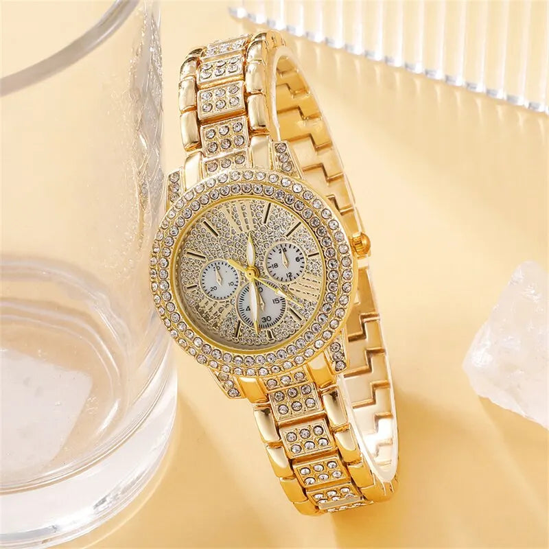 • Rhinestone-encrusted design :The watch, ring, necklace, and earrings are adorned with sparkling rhinestones, adding a touch of glamour to any outfit.