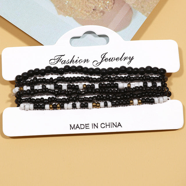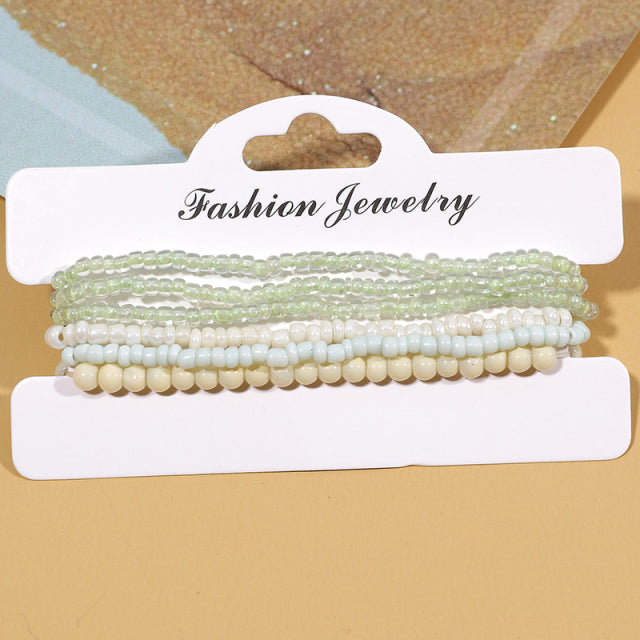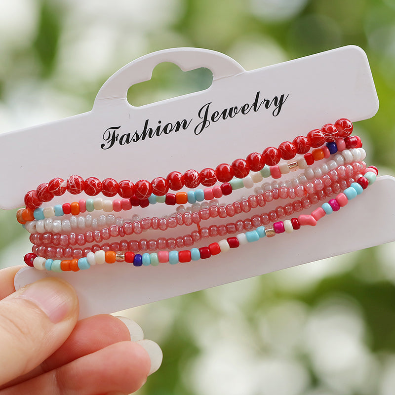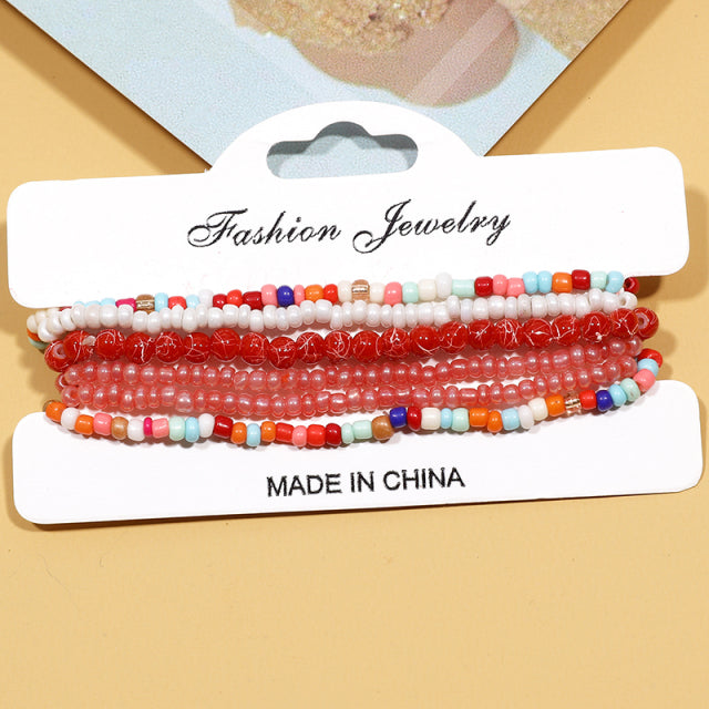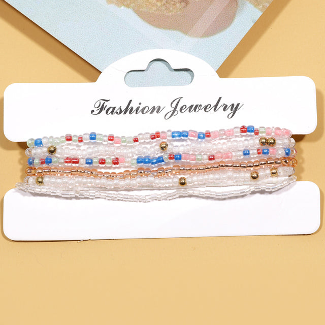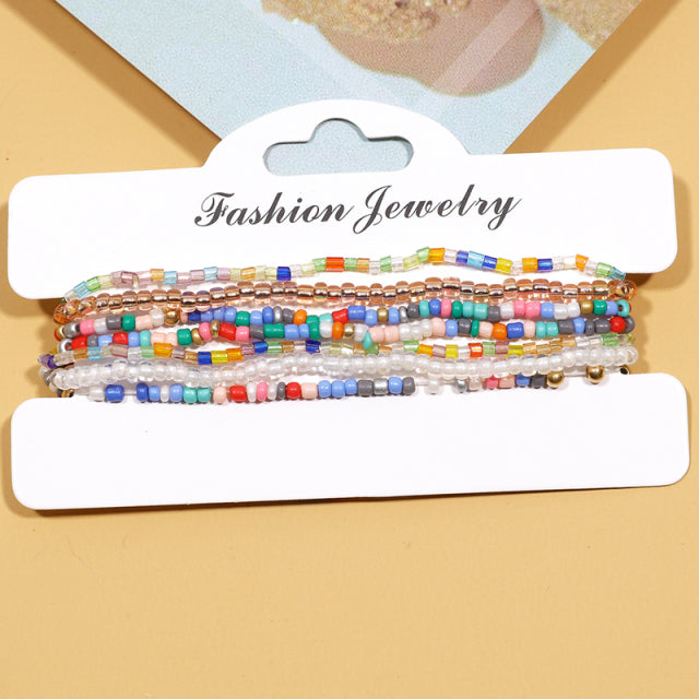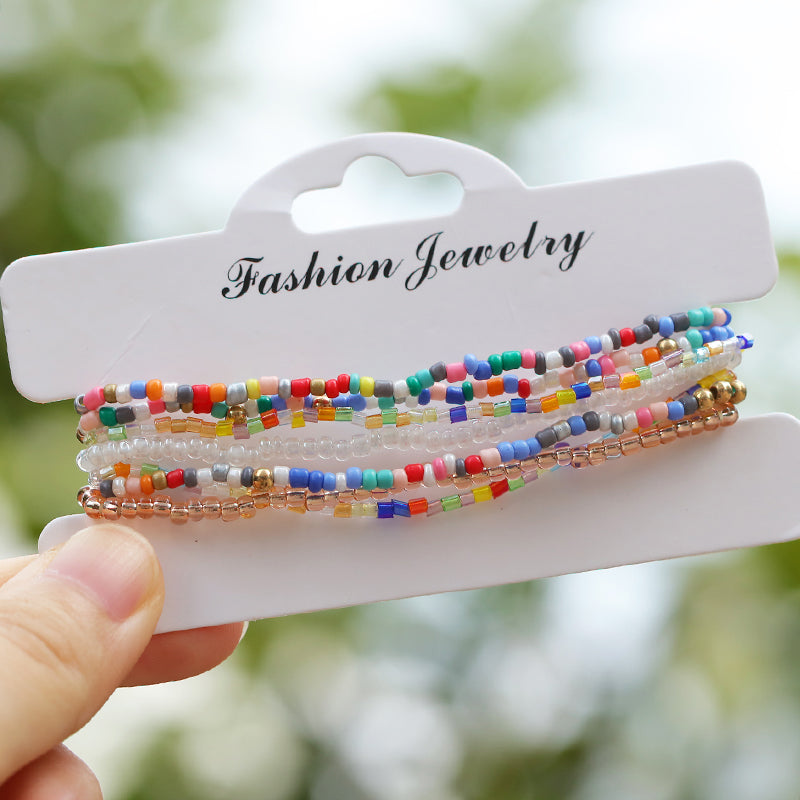 Anklets- 7pcs/Set New Handmade Beaded Anklet Bracelets Rainbow Color Elastic Ankle Bracelet On The Leg Foot Beach Jewelry