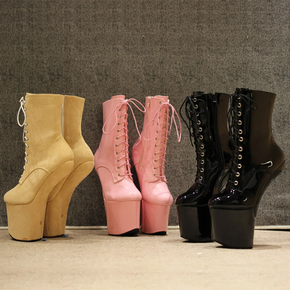 8 Inch High Heelless Exotic Pole Dance Platform Ankle Boots Extreme Fetish Size36-46 In Stock