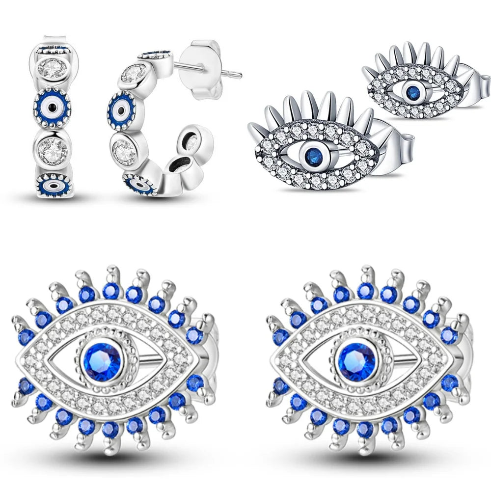 925 Sterling Silver Magic Eye Religion Symbol Series Stud Earrings Zircon For Women Fine Daily Wear Jewelry Accessories Gifts