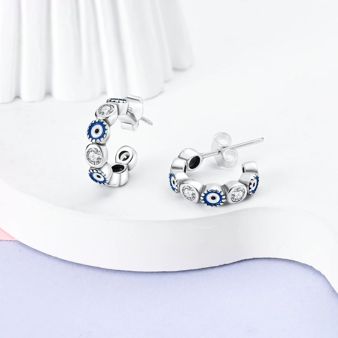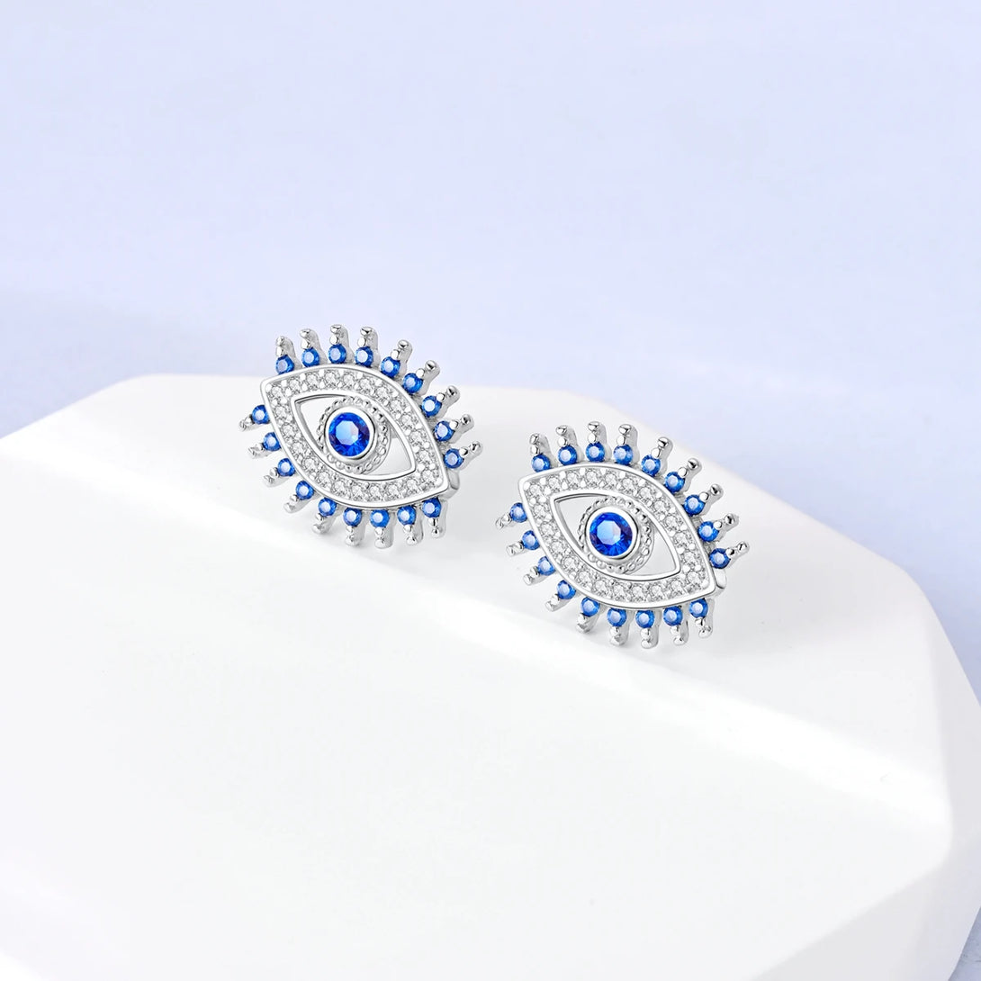 925 Sterling Silver Magic Eye Religion Symbol Series Stud Earrings Zircon For Women