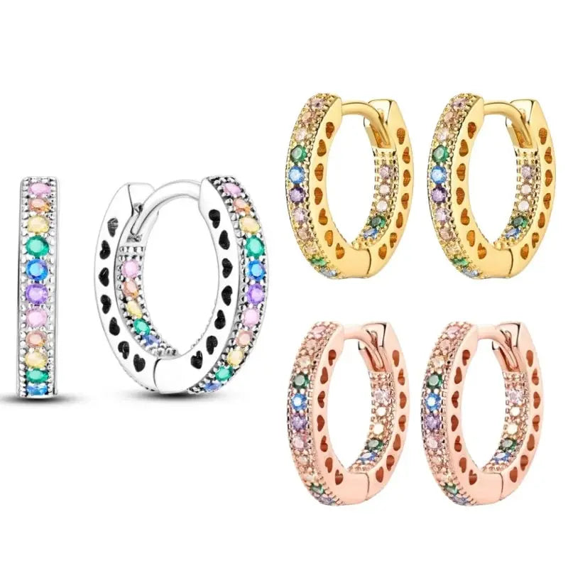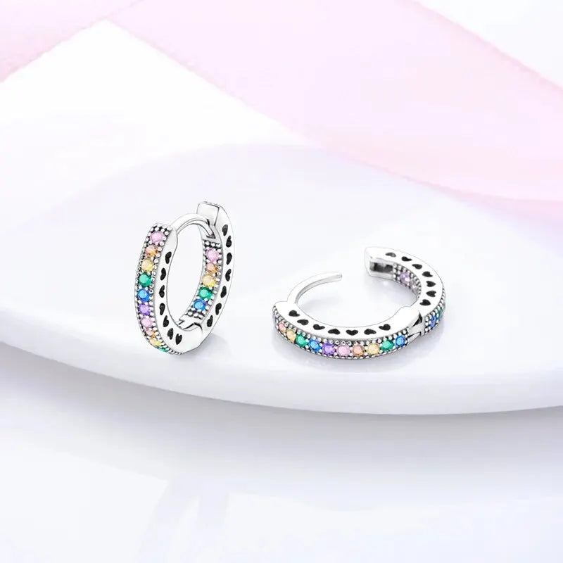 925 Sterling Silver Pave Round Shape Geometry of Simple Earring Hoop Earrings for Women