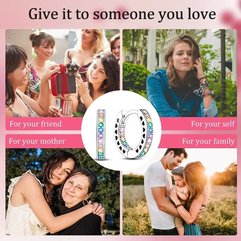 925 Sterling Silver Pave Round Shape Geometry of Simple Earring Hoop Earrings for Women Jewelry Wedding Engagement Birthday Gift