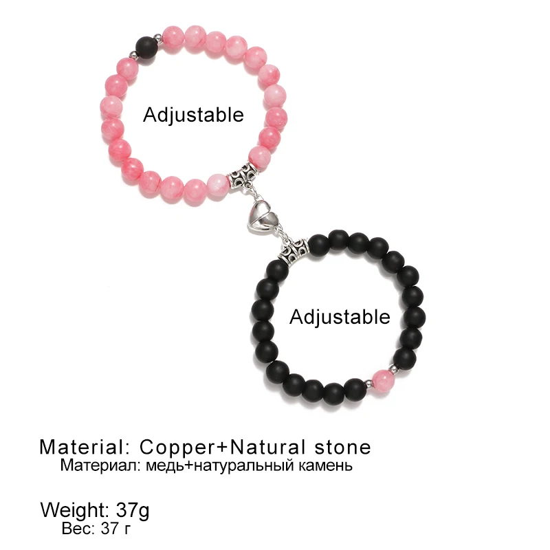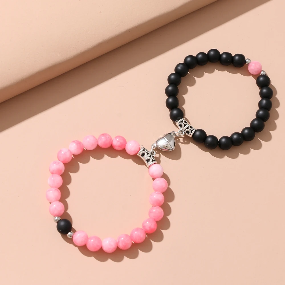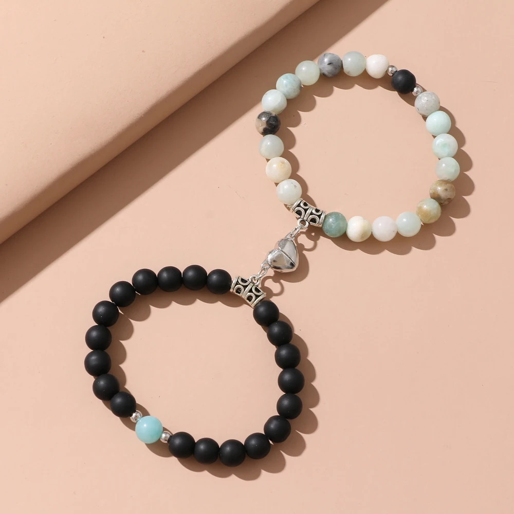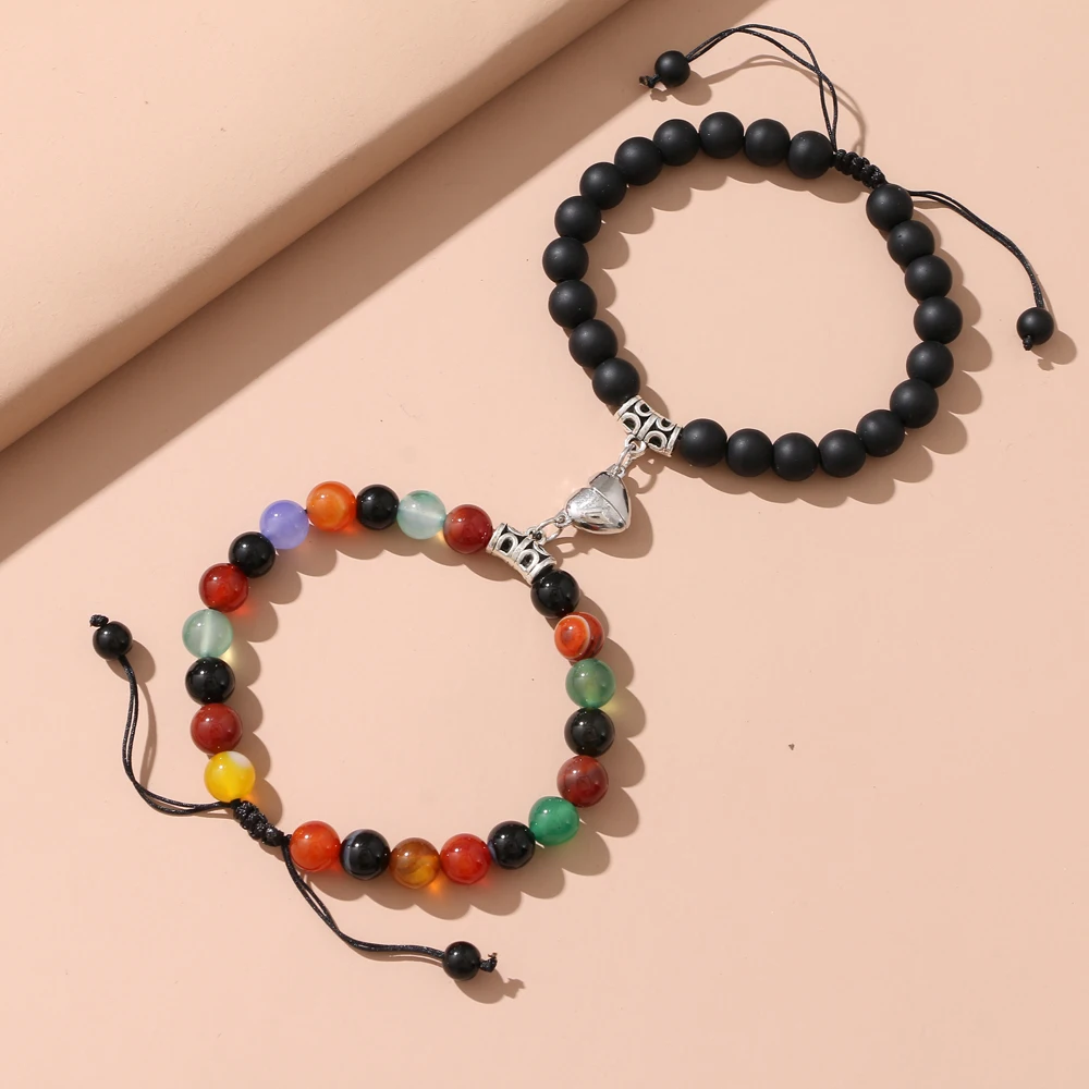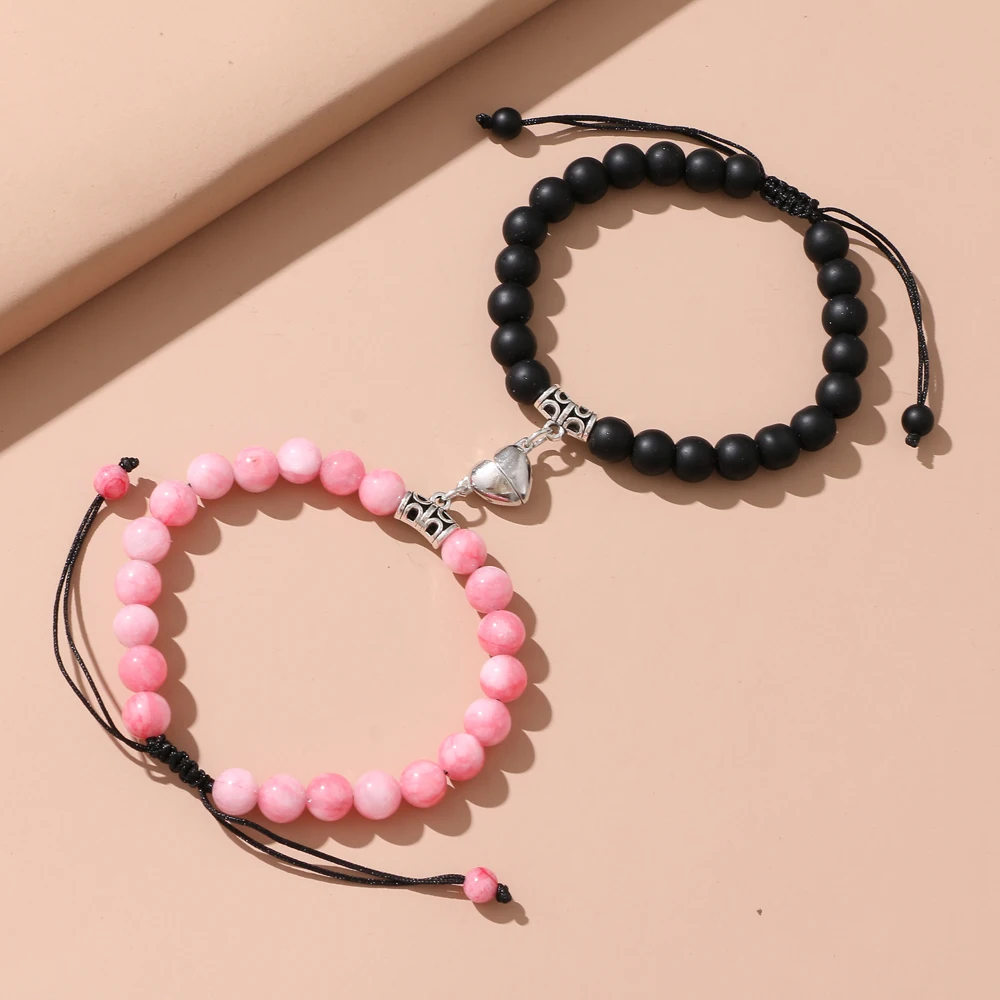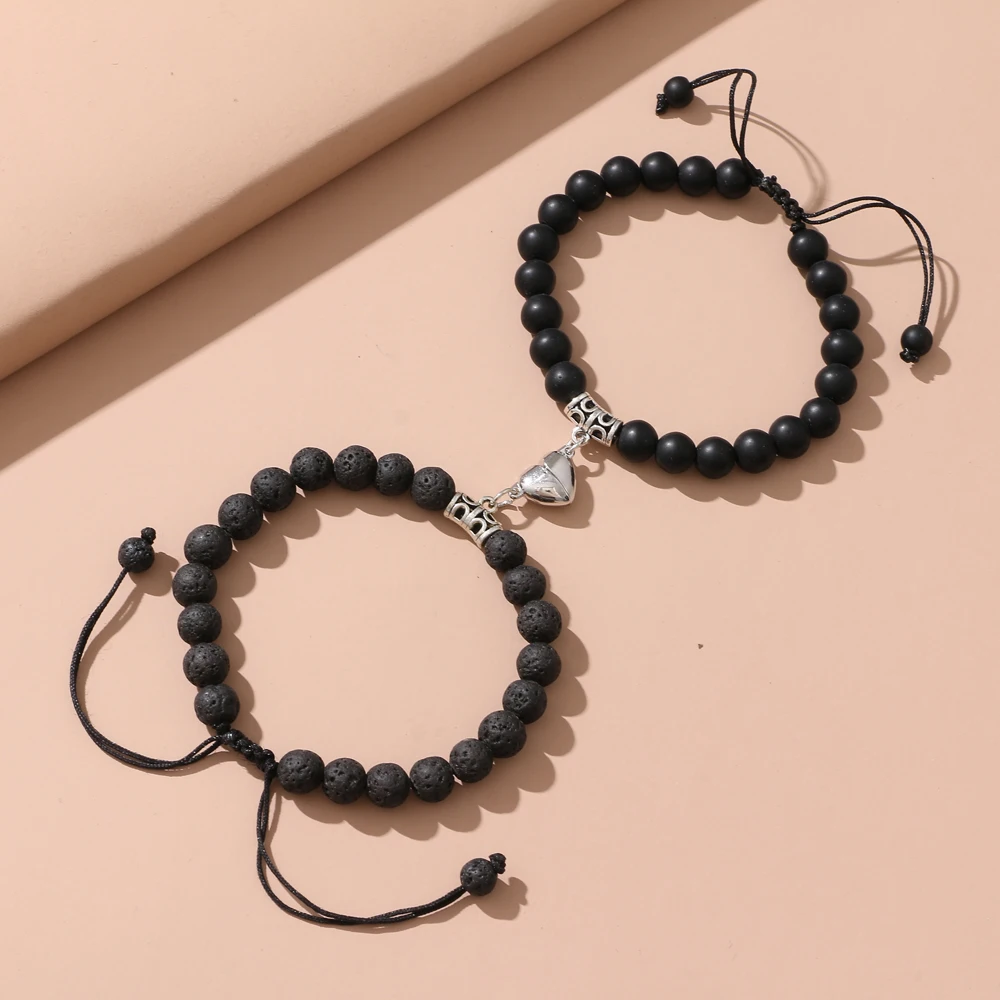 Adjustable 2pcs Magnetic Bracelet Stainless Steel Heart Pendant Beaded Bracalet