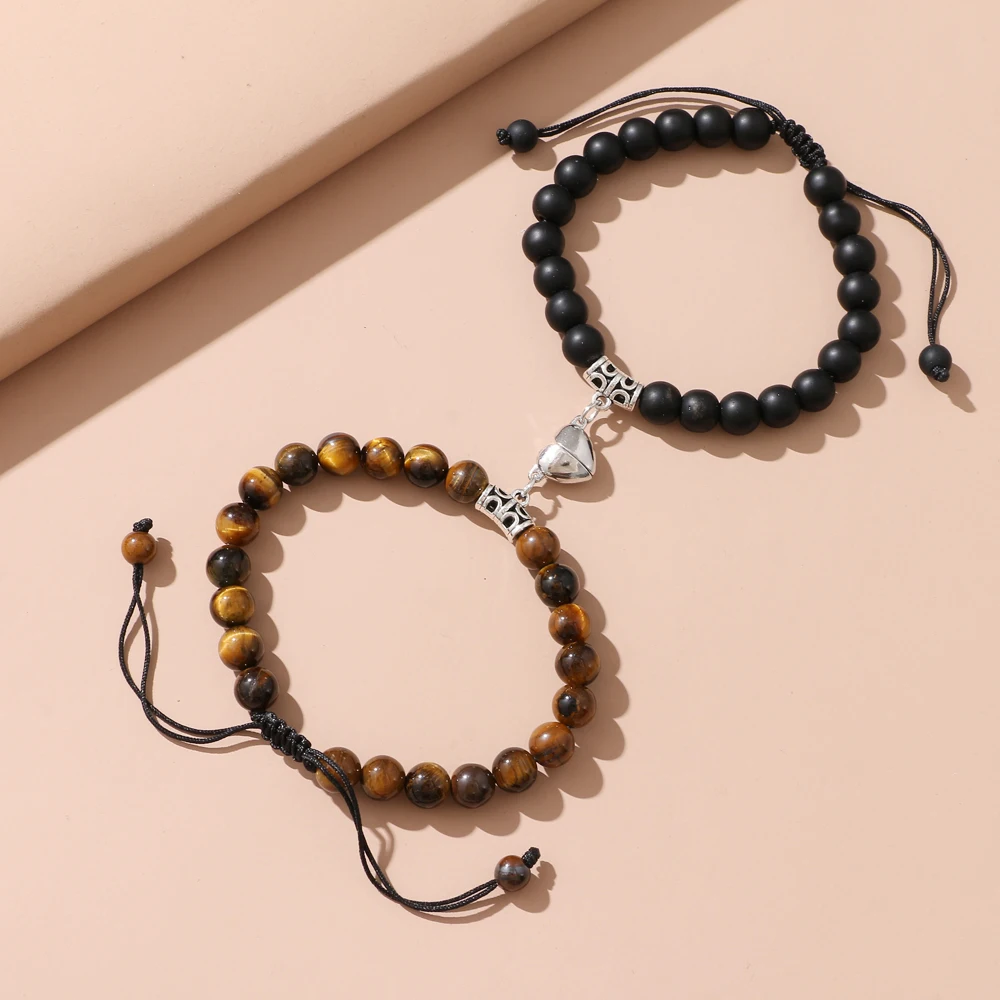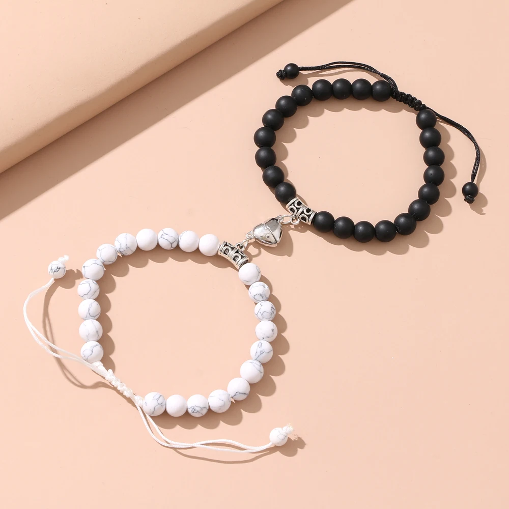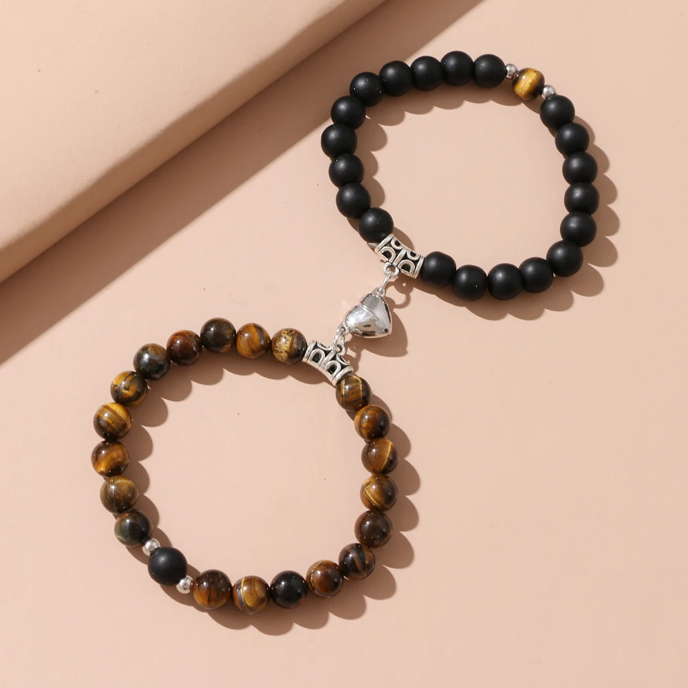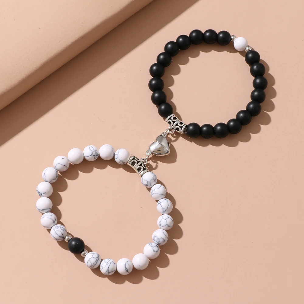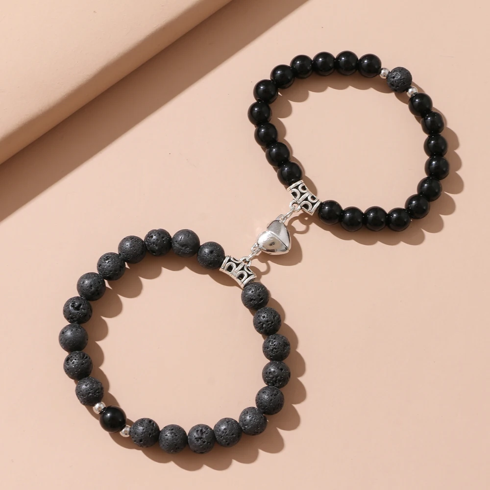 Adjustable 2pcs Magnetic Bracelet Stainless Steel Heart Pendant Beaded Bracalet