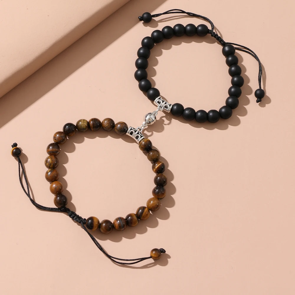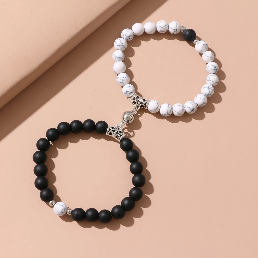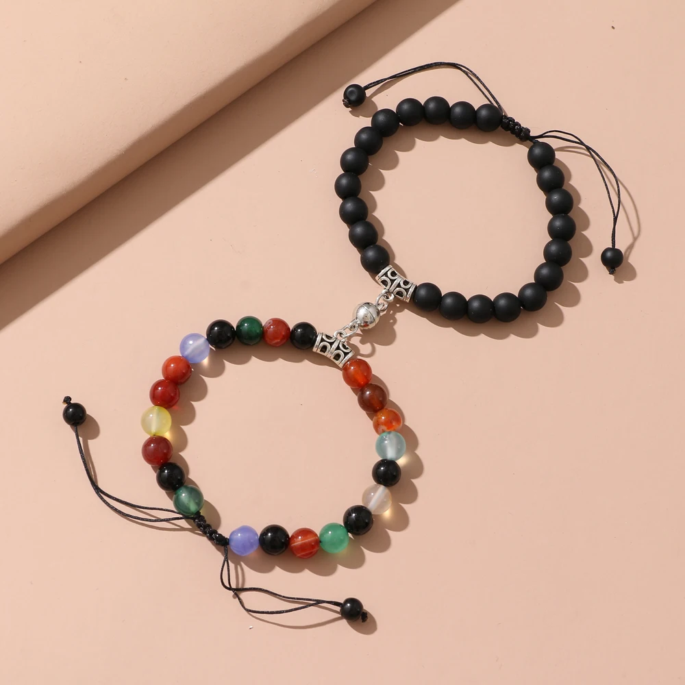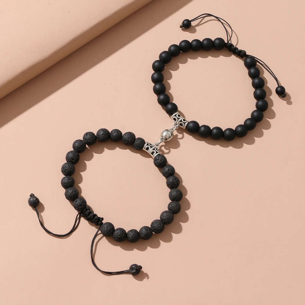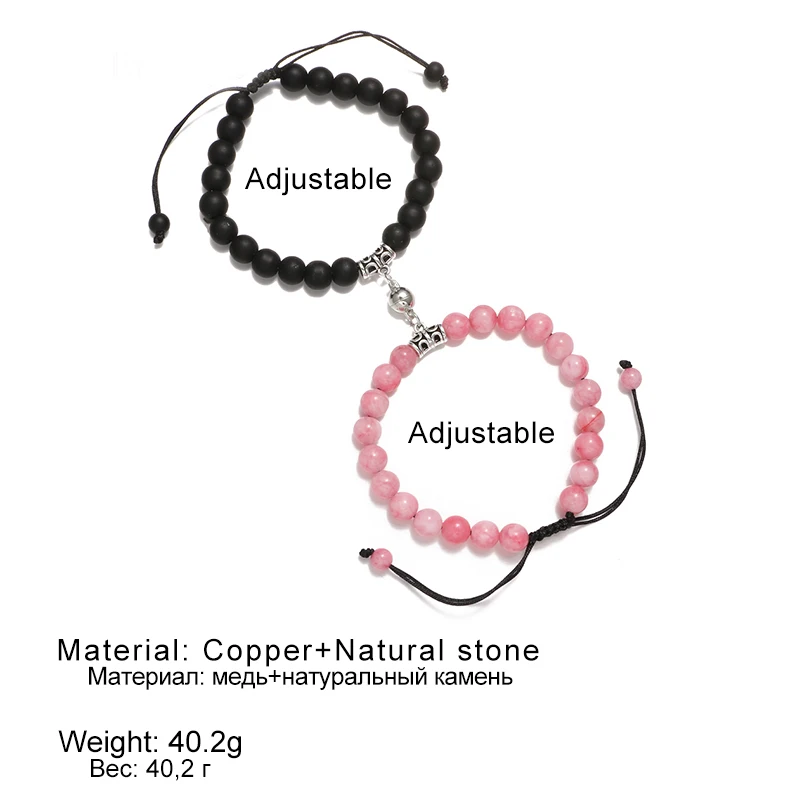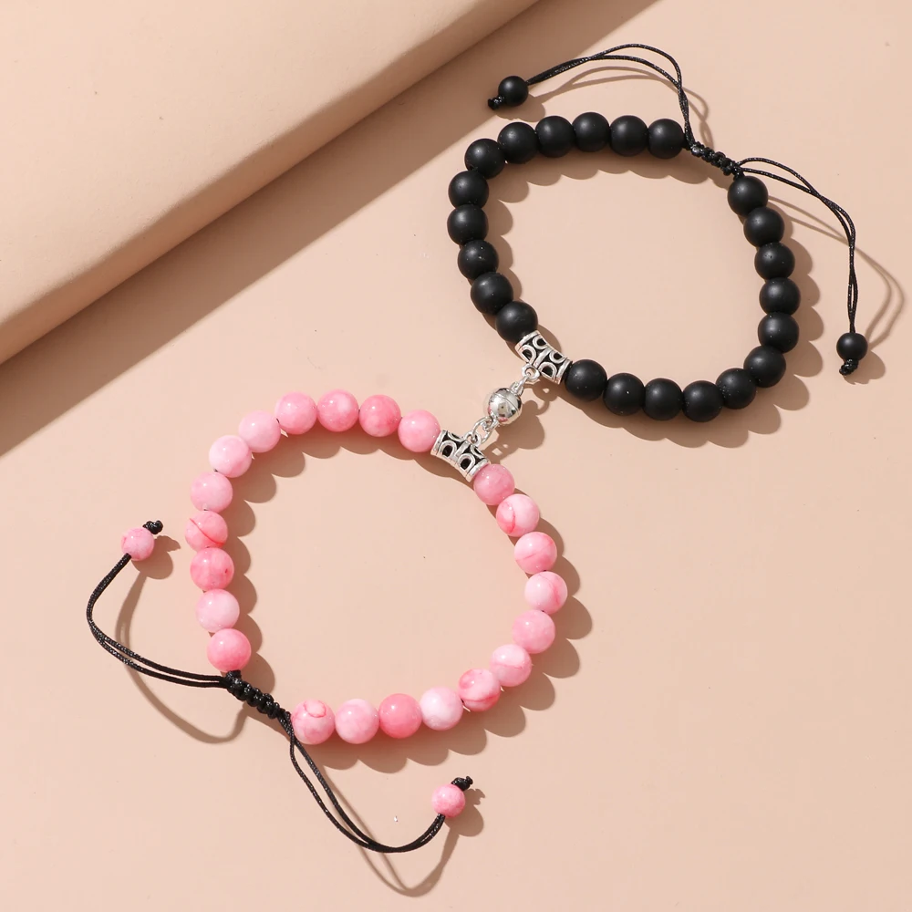 Adjustable 2pcs Magnetic Bracelet Stainless Steel Heart Pendant Beaded Bracalet