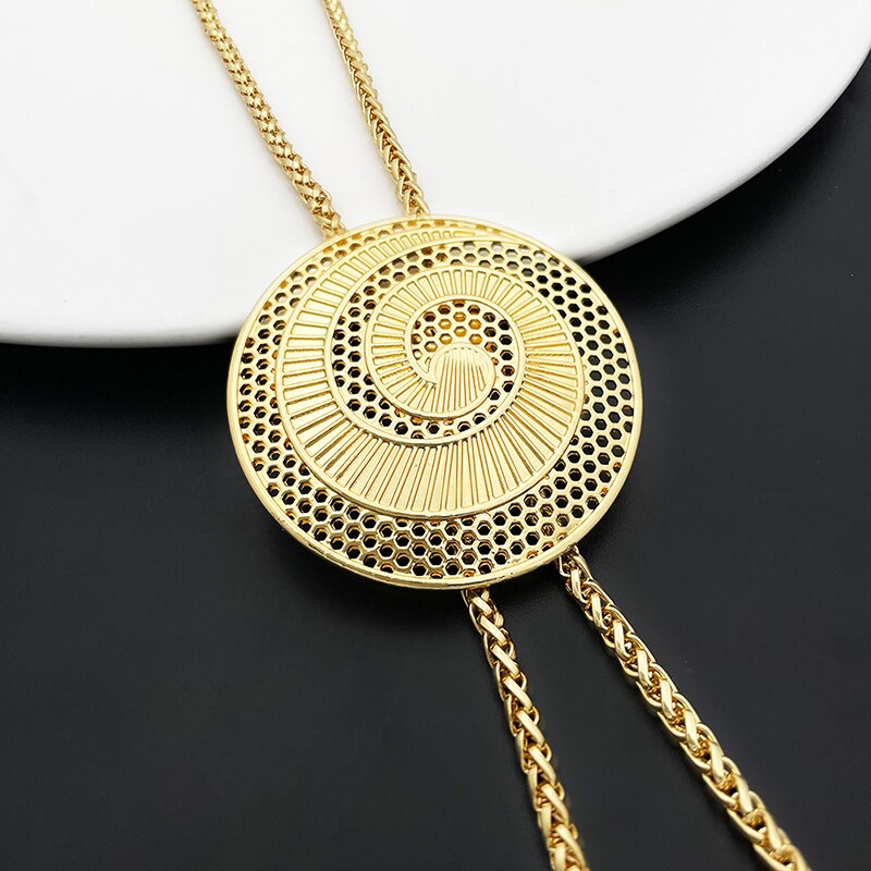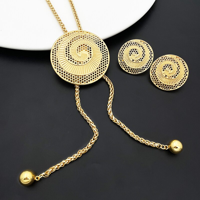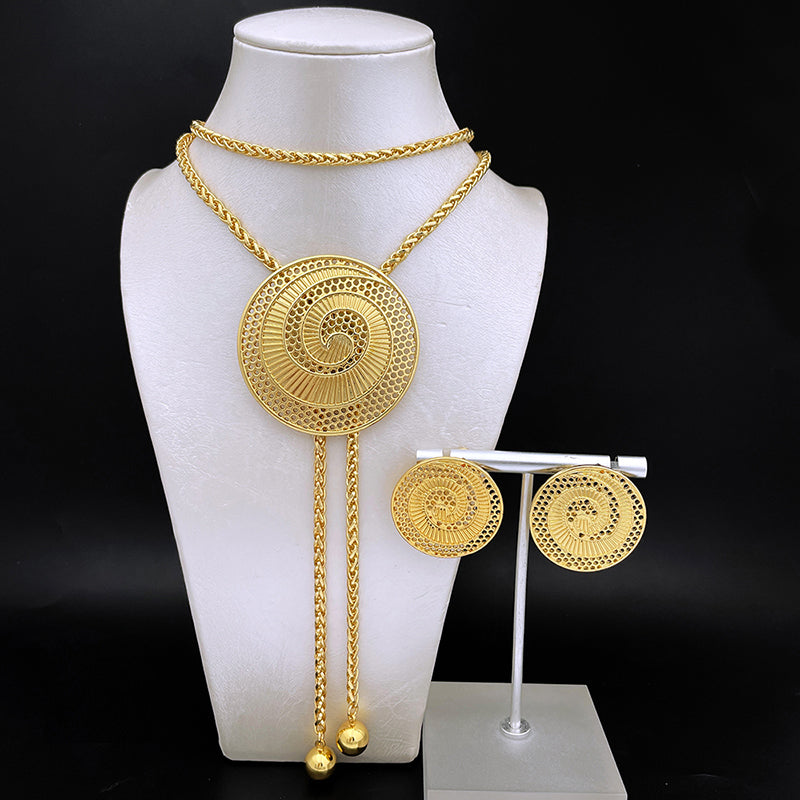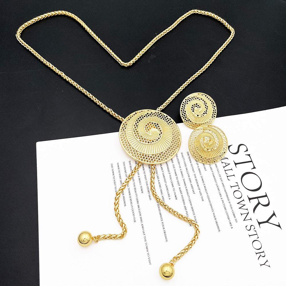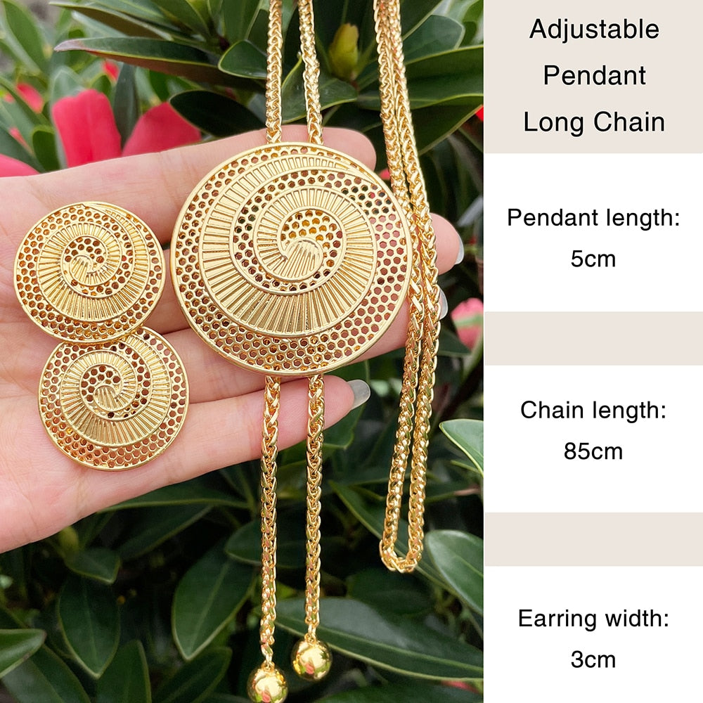 Adjustable Long Necklace Large Round Pendant Earrings Dubai Gold Plated Jewelry For Women