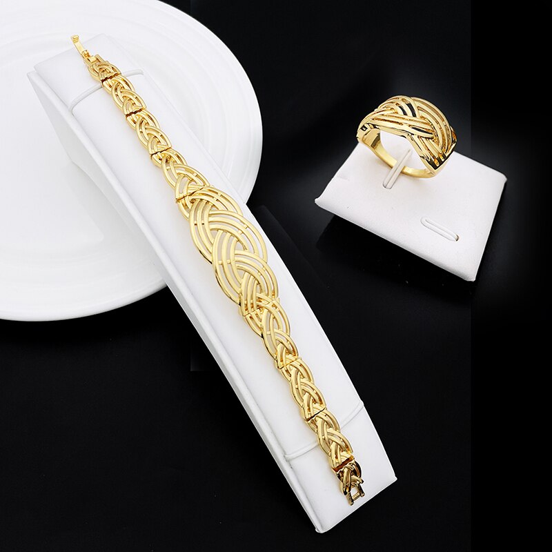 Italy New Design Ladies Gold Color Jewelry African Fashion Necklace Ring Bracelet Set Dubai Bowknot Shape Jewelry Set