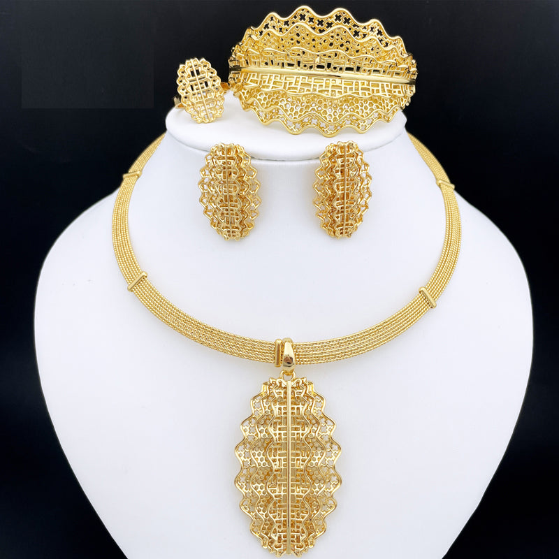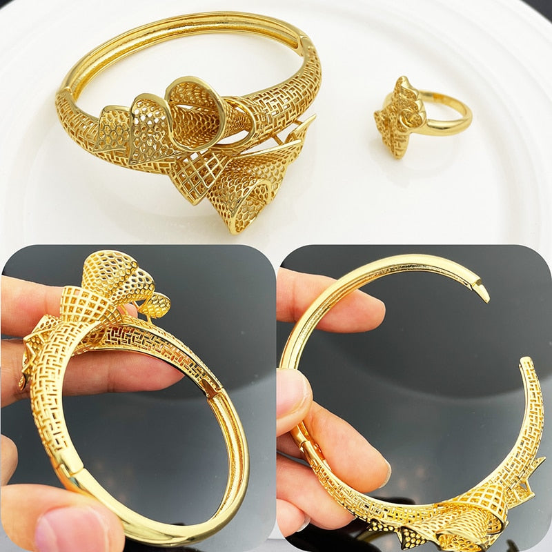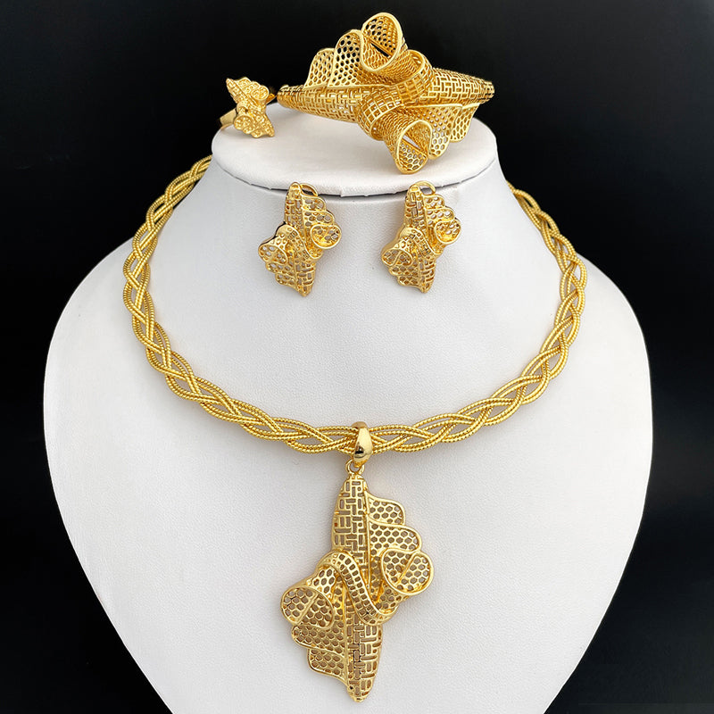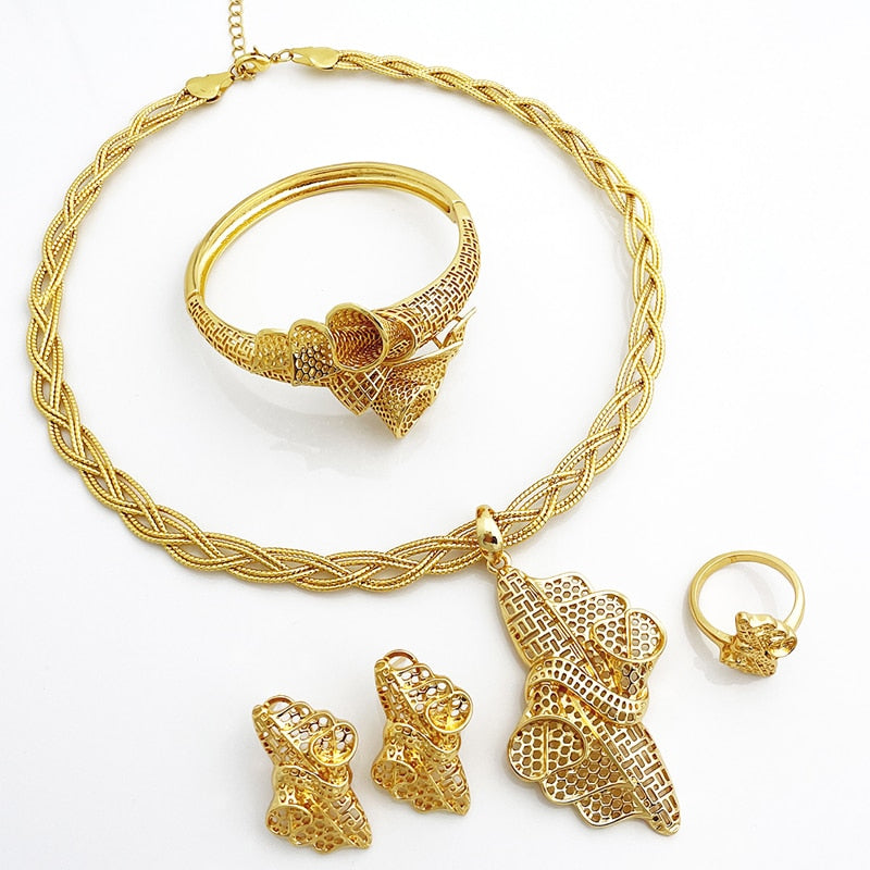 African Dubai Gold Color Jewelry Set For Women Nigeria Bridal Wedding Party Gift