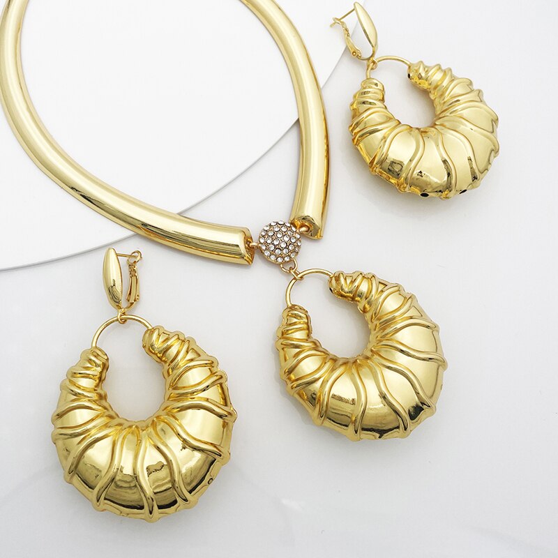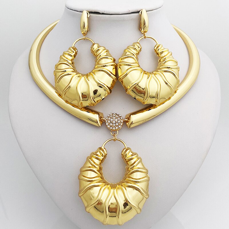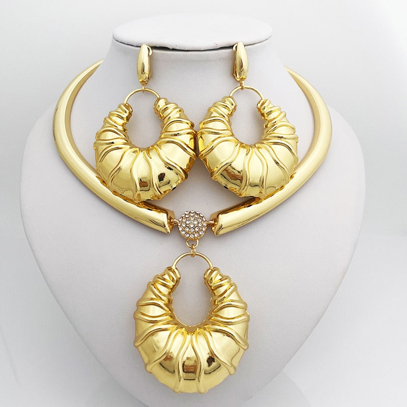 Afraic Jewelry-African Fashion Jewelry Necklace Earring Set Large Pendant Nigeria Gold Plated Bride Jewelry Wedding Party Gift