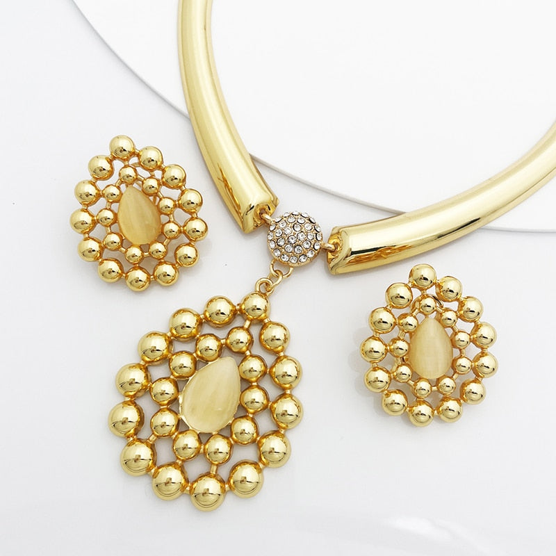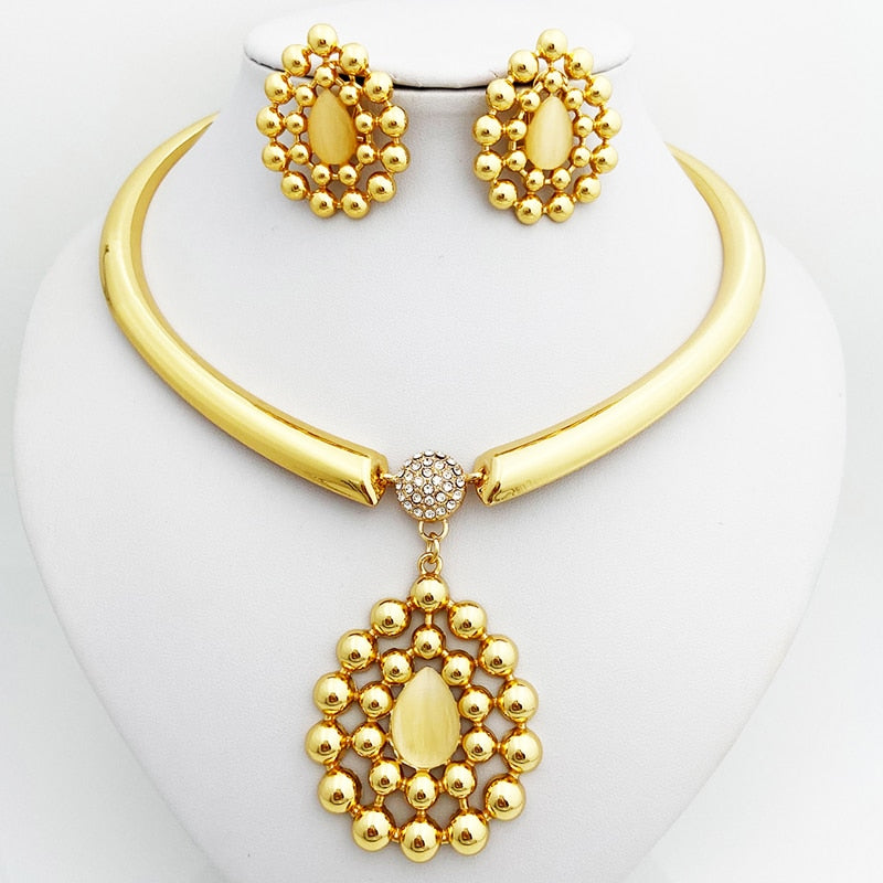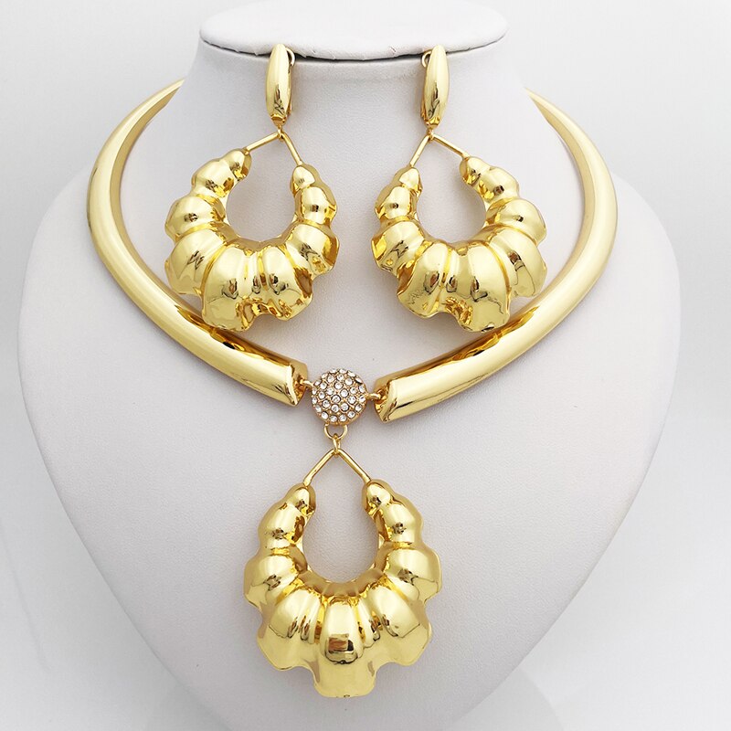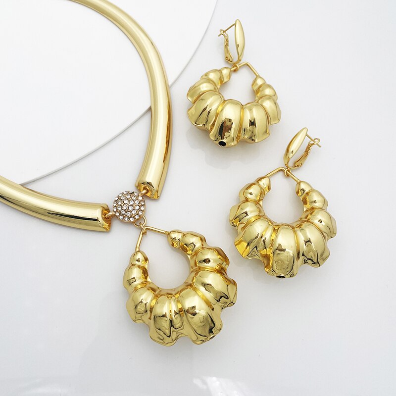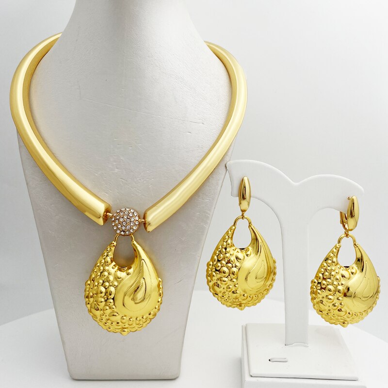 African Fashion Jewelry Necklace Earring Set Large Pendant Wedding Party Gift