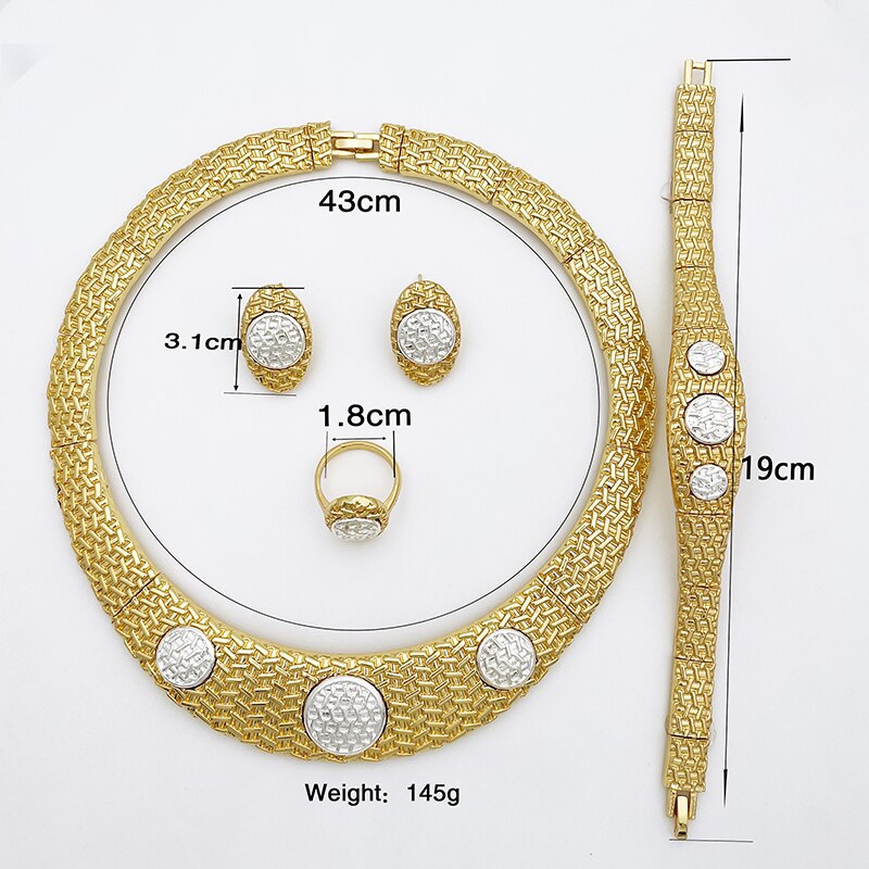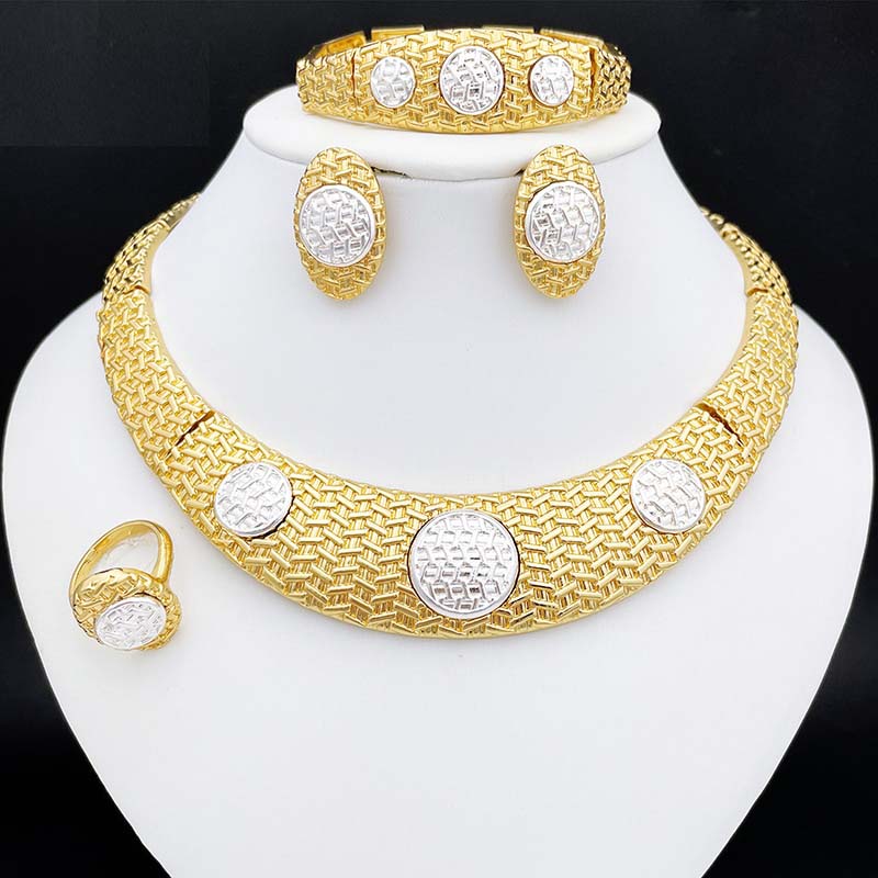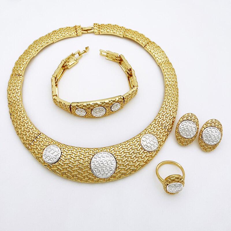 Latest Dubai Gold Color Fashion Jewelry Necklace Earing Bracelet Ring Four Pieces Set For Women