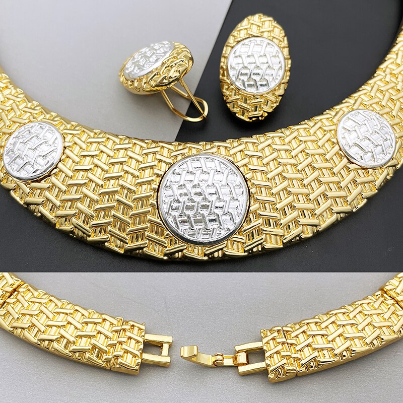 African Fashion Jewelry Set Dubai Women Necklace Earrings Nigeria Gold Plated Bride Jewelry