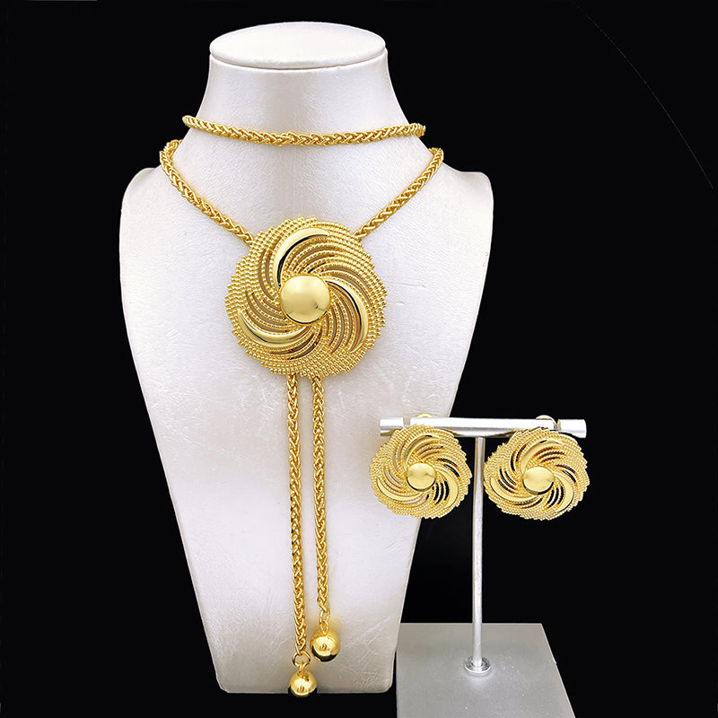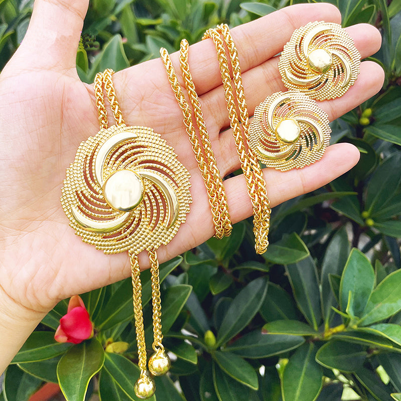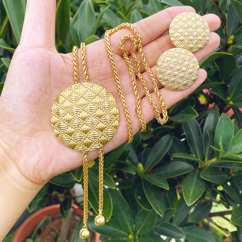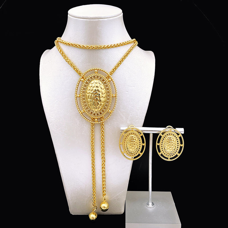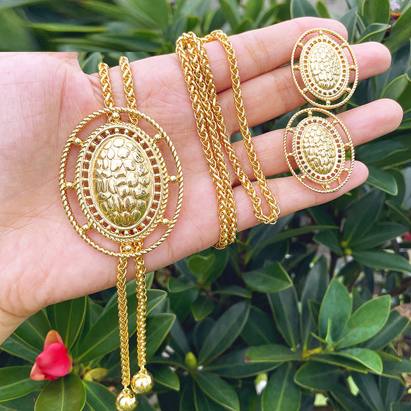 Afraic Jewelry -African Gold Color Jewelry set Adjustable Chain Necklace Long Necklace Women's Earrings Large Pendant Wedding Party Gift