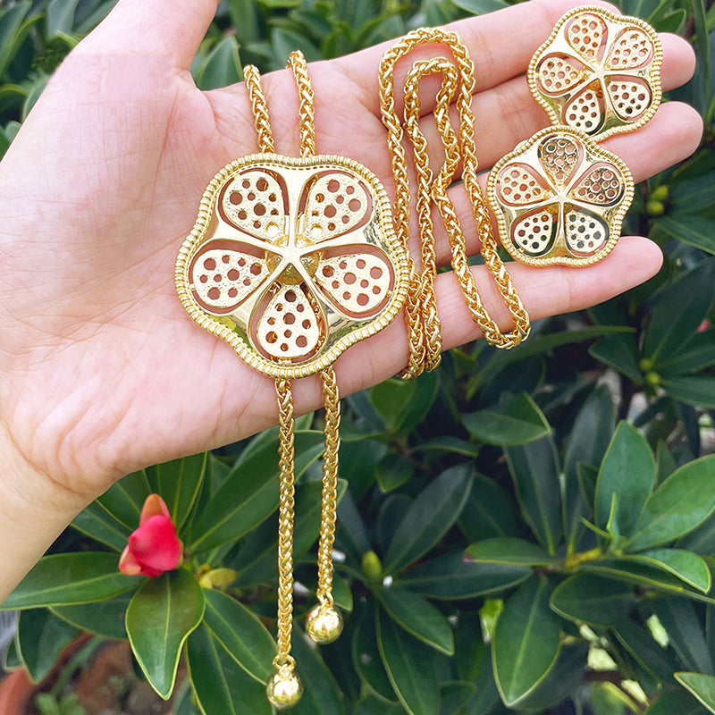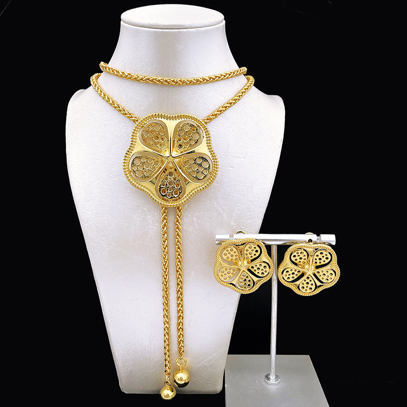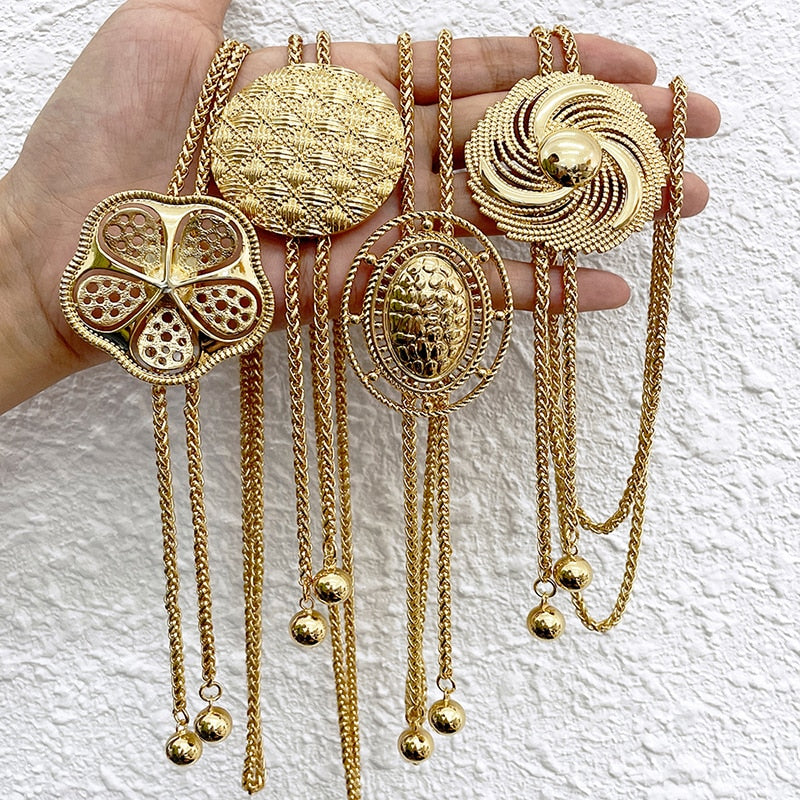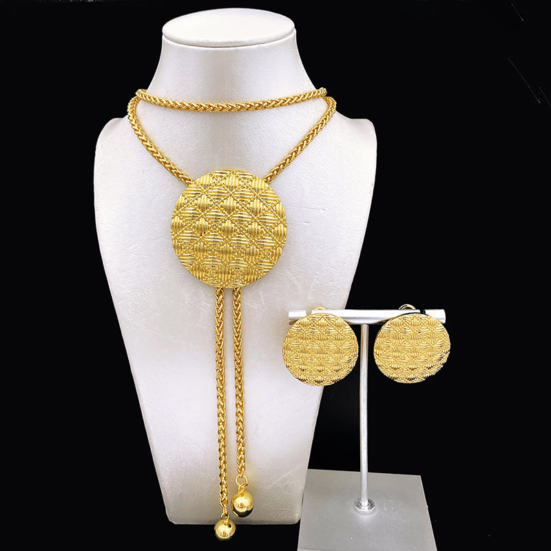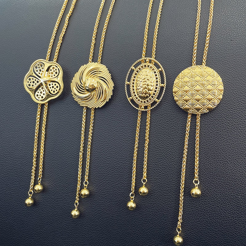 African Gold Color Jewelry set Adjustable Chain Necklace Long Necklace Women