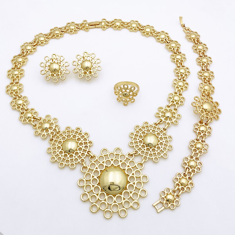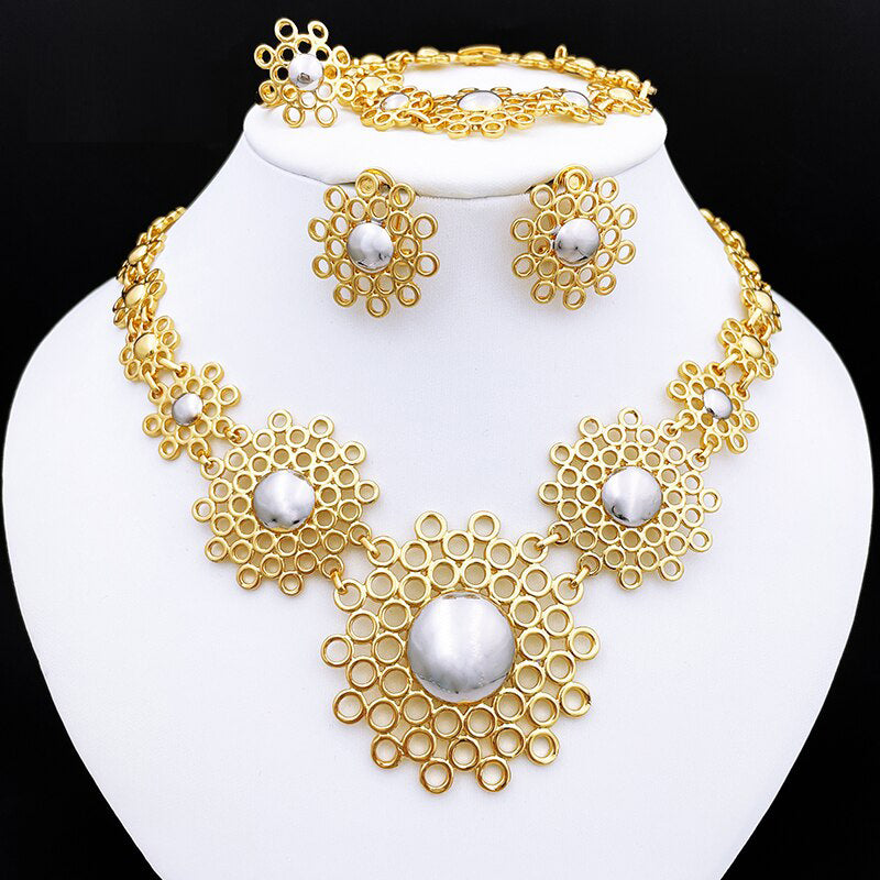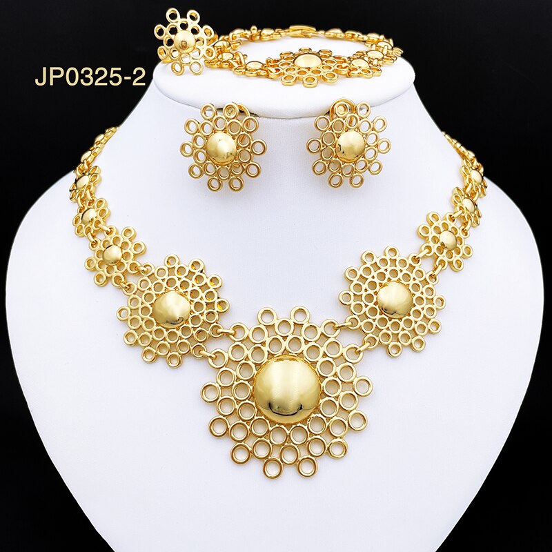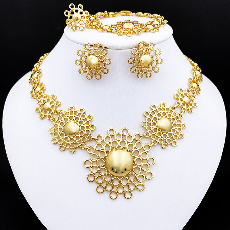 African Gold Plated Jewelry Set Women Necklace Earrings Designed For Beautiful Stylish Women