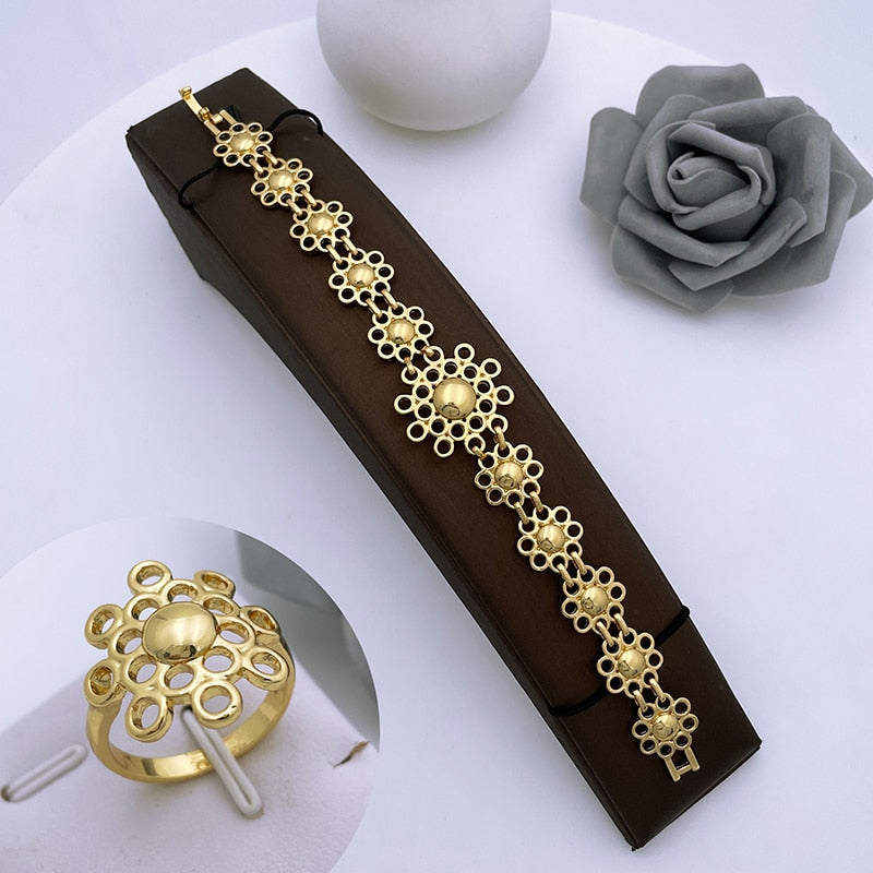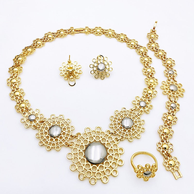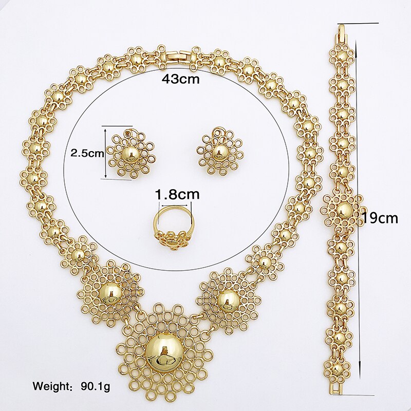 Dubai Gold Color Jewelry Sets Women Necklace And Earrings Big Bracelet Wedding Banquet Party Jewelry Free Shipping