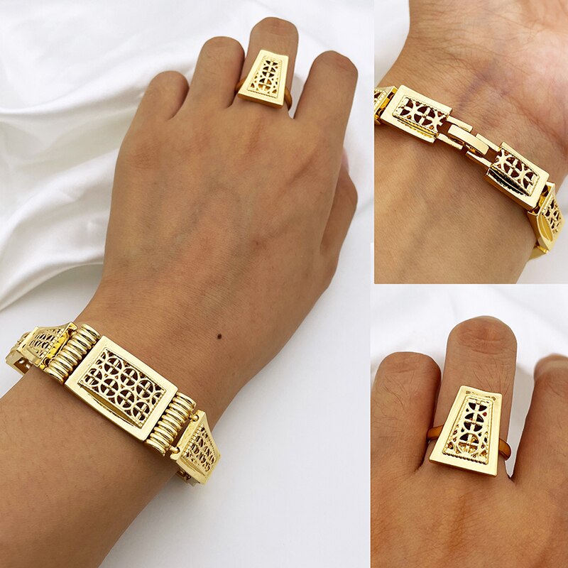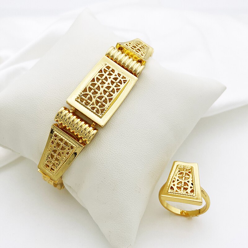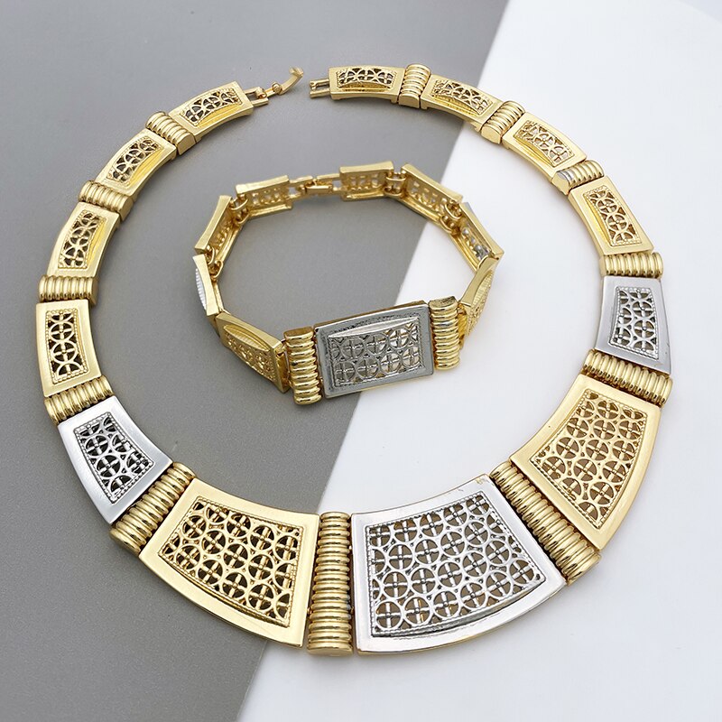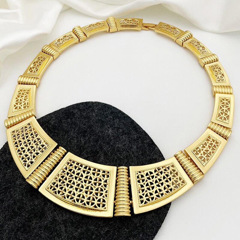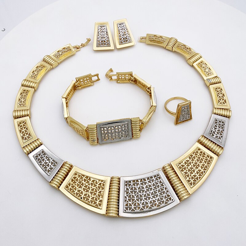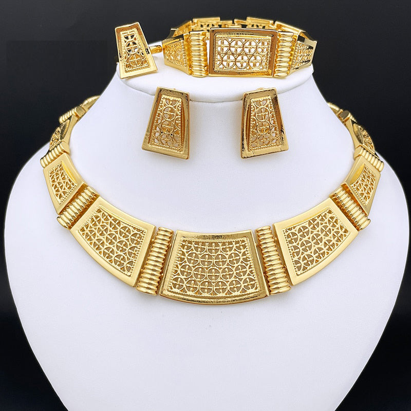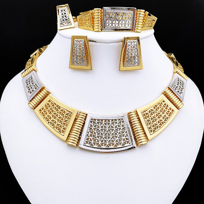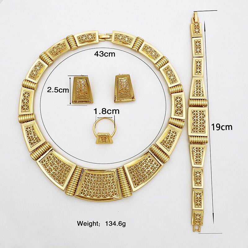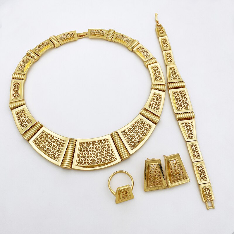 African Gold Plated Jewelry Set Women Prom Necklace Earrings Charm Bracelet