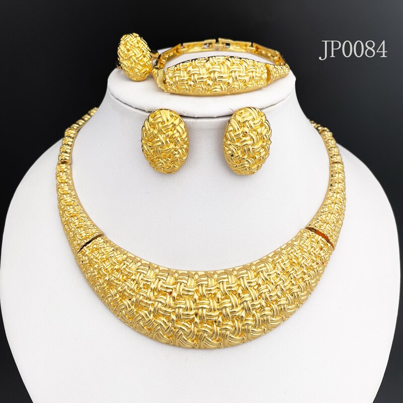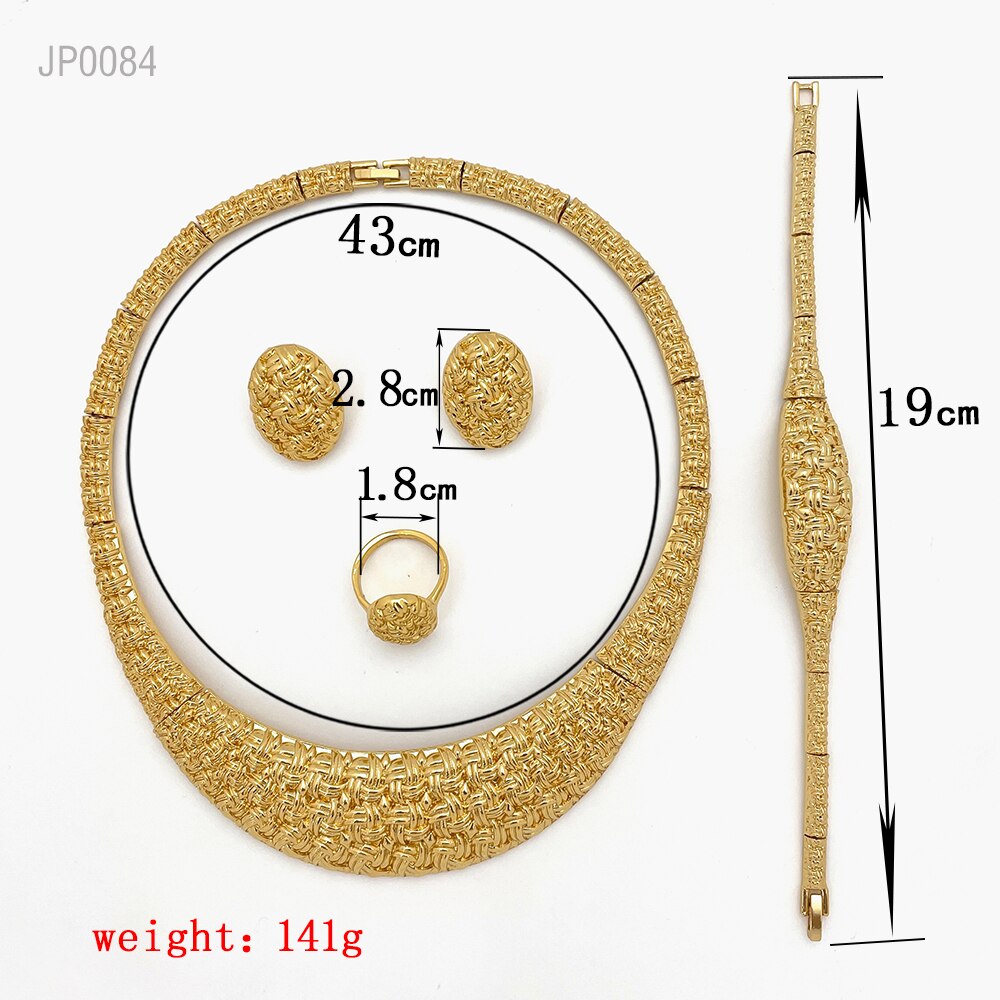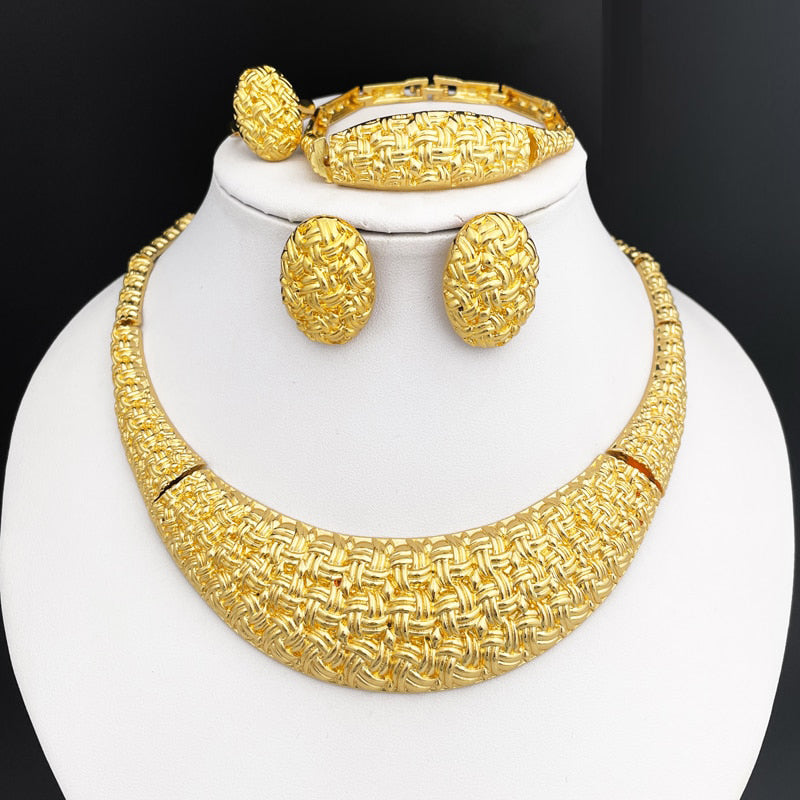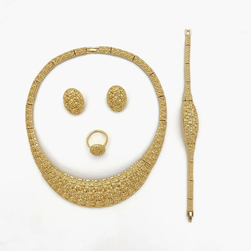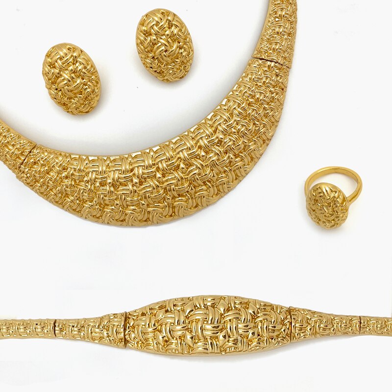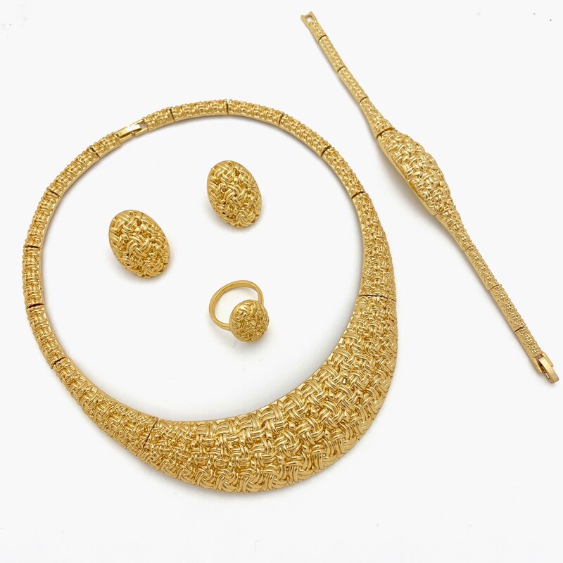 African Luxury Gold Color Jewelry Set Dubai Highend Necklace Bracelet Earrings Ring Set For Woman