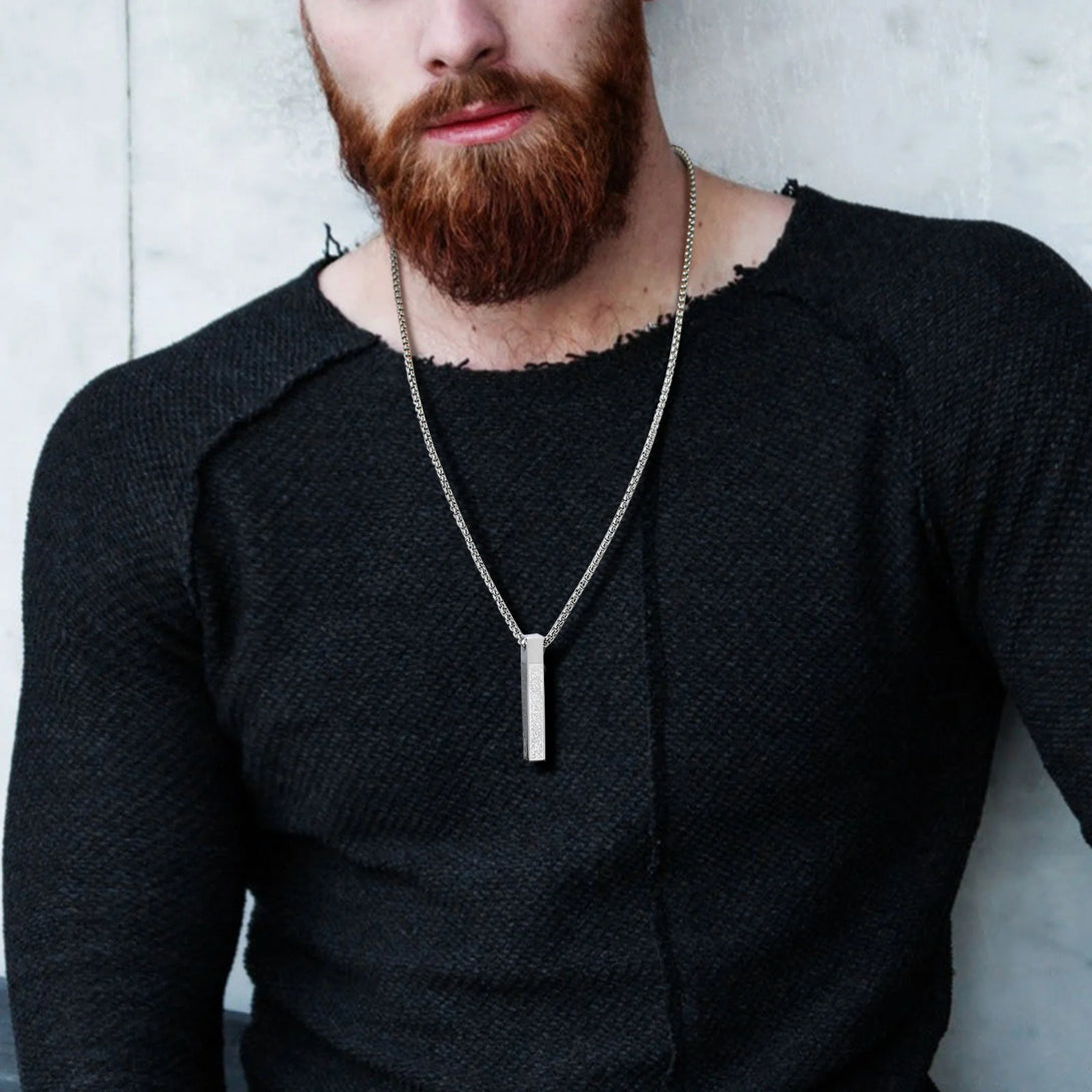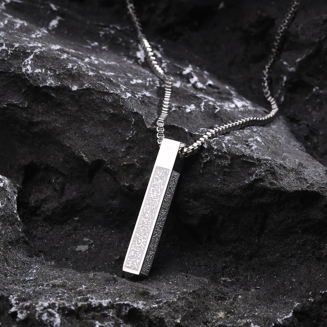 Allah Arabic 3D Bar Necklaces for Men,Muslim Pendant Ayatul Kursi Necklace,Islam Eid Ramadan Islamic Jewelry Gifts