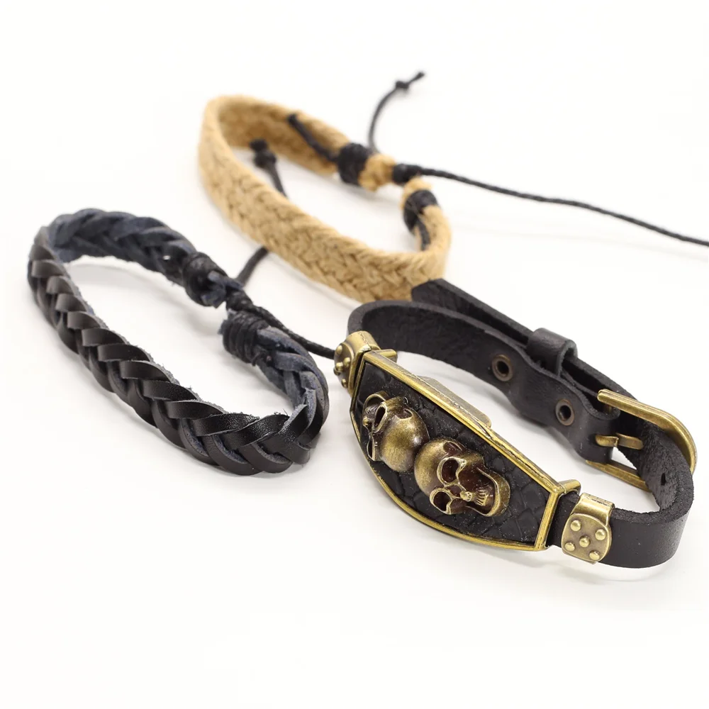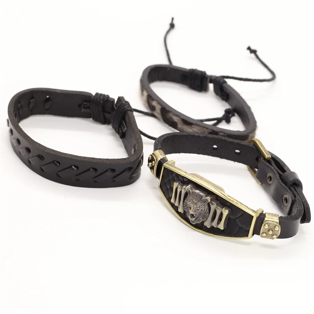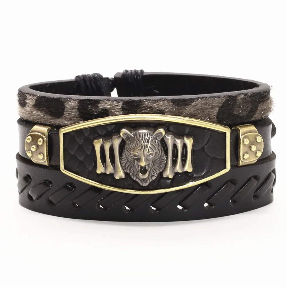 Alloy Scorpion Charm Braided Leopard Genuine Men Leather Bracelets For Women