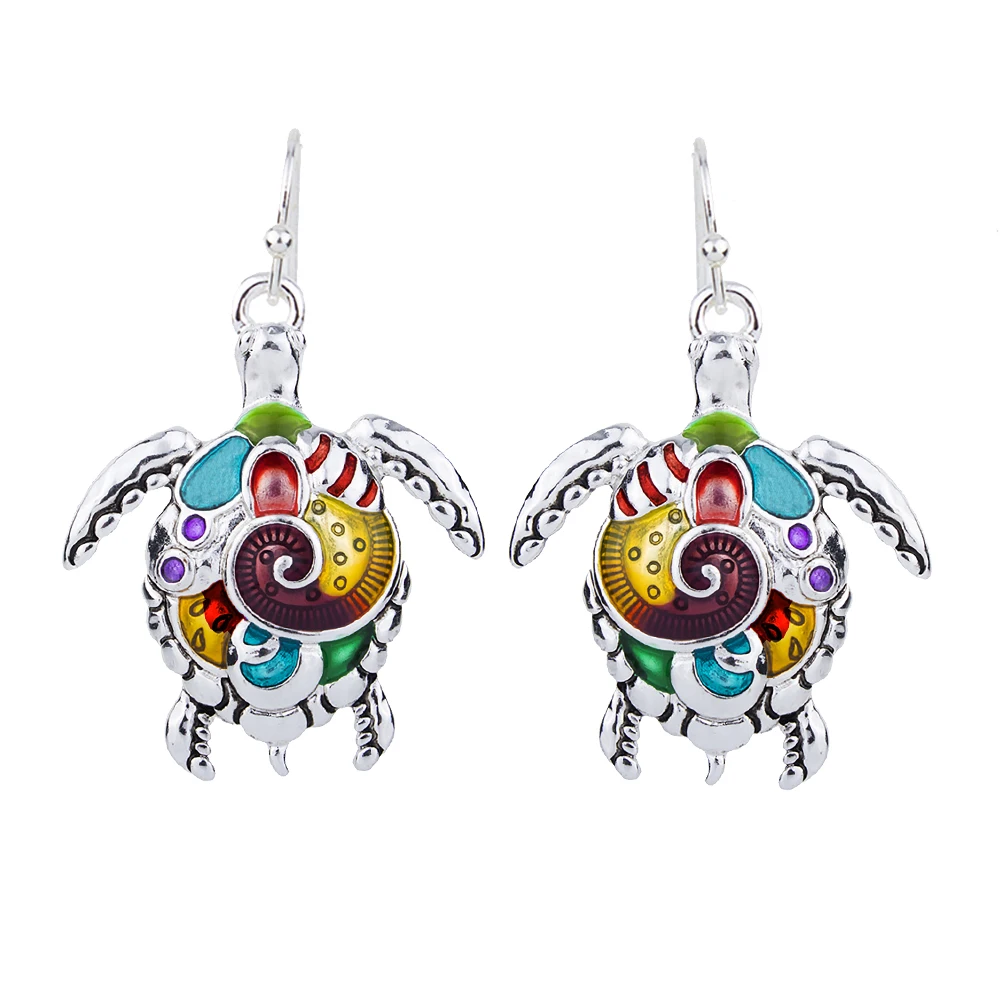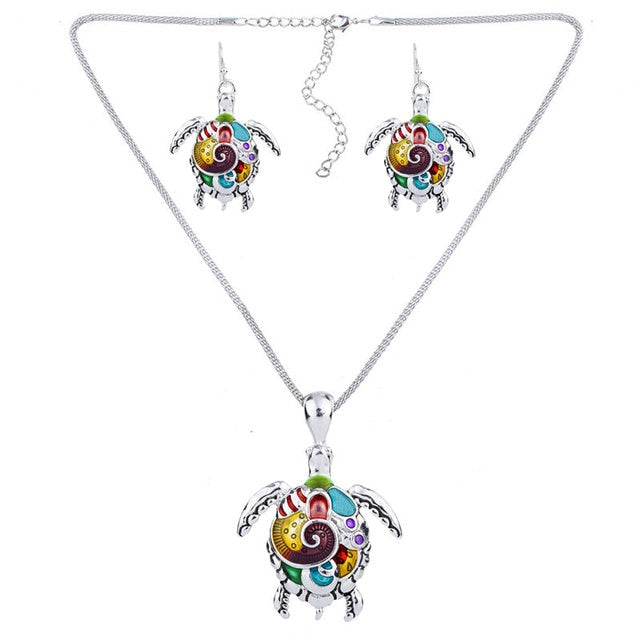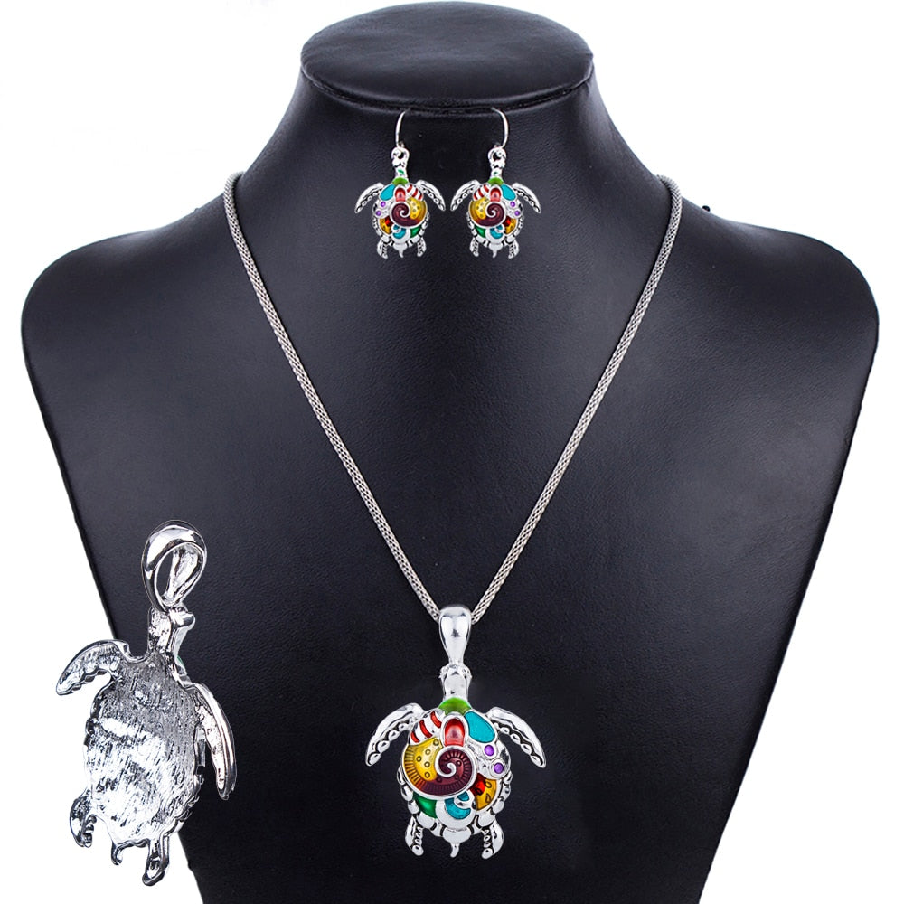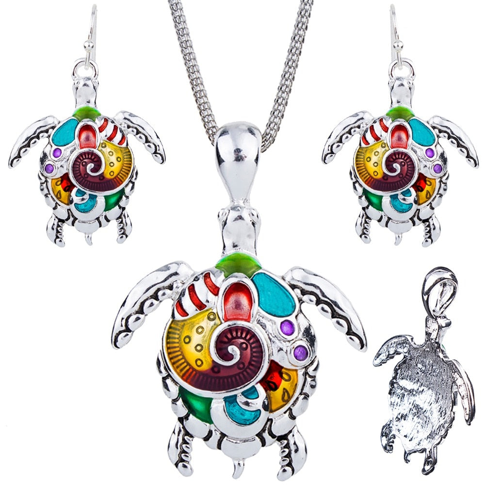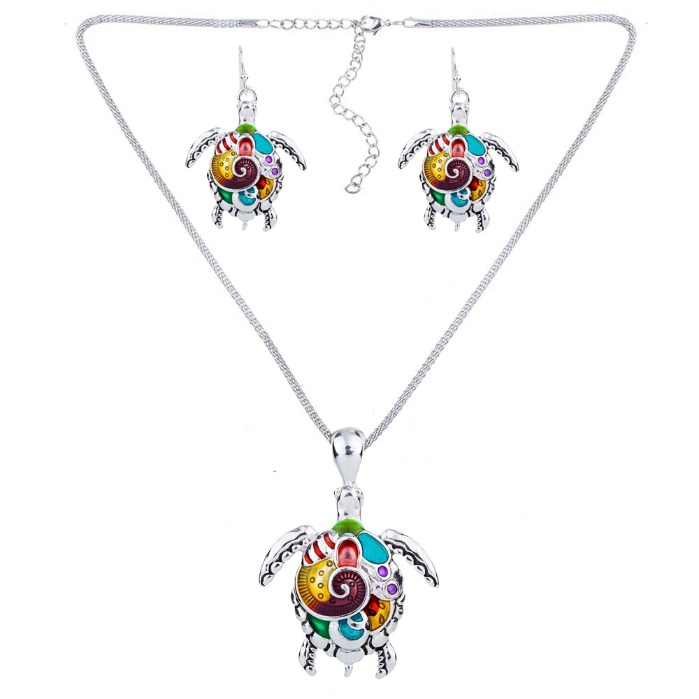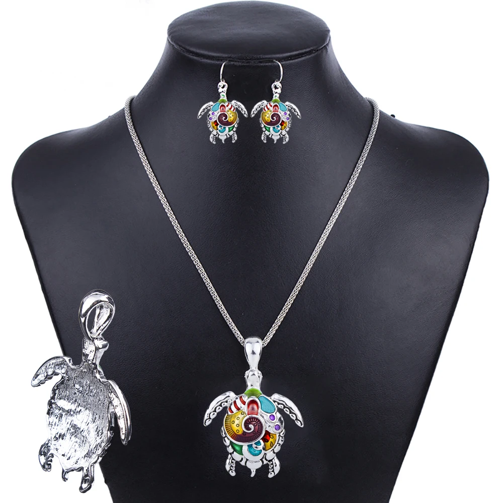 1set NEW Tortoise Necklace Earrings Set Alloy Unique Tortoise Design Gift Animal Pendant Jewelry Sets Rainbow Charm Accessories