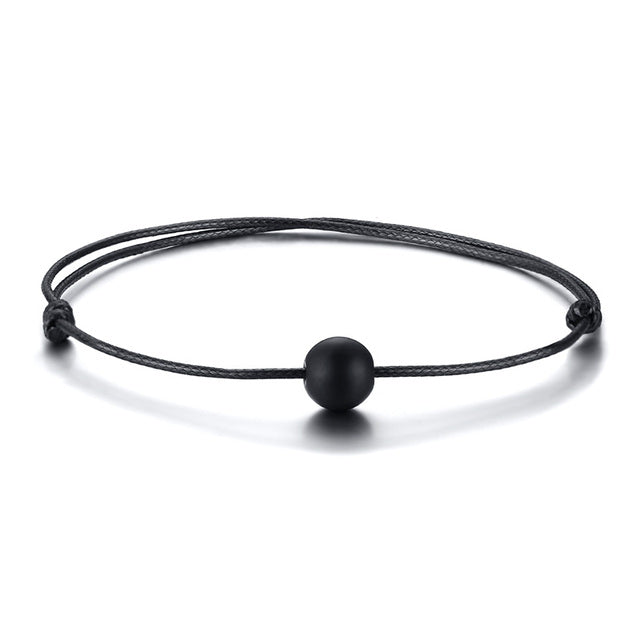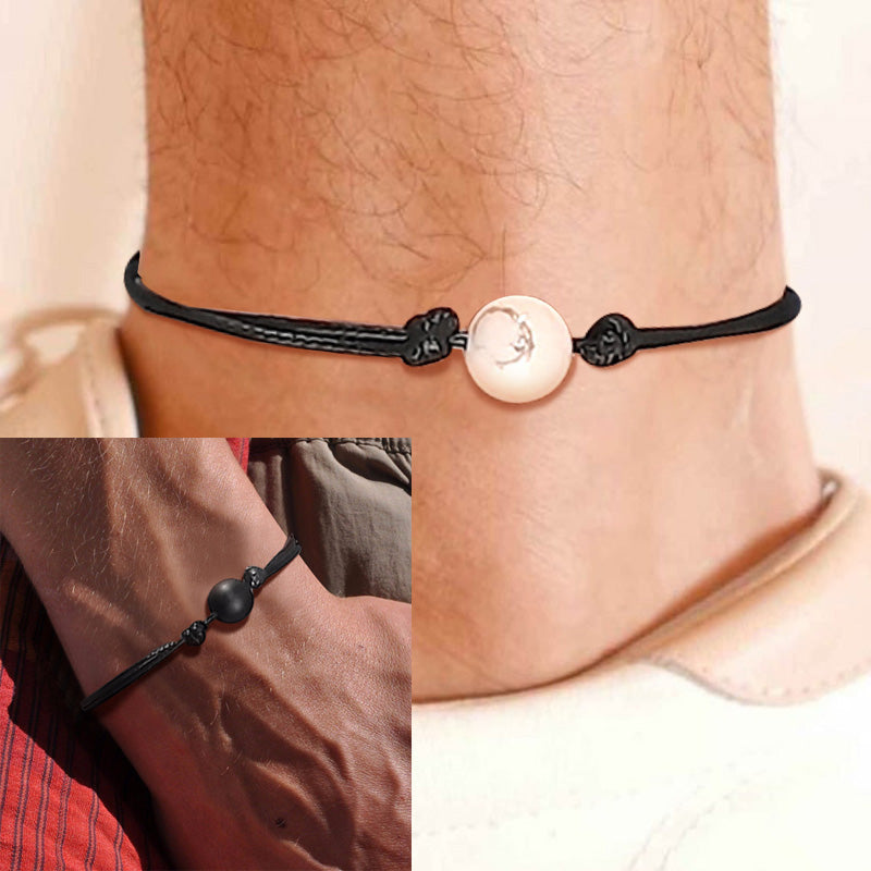 Anklets- ANKLET FOR MEN STONE BEAD BLACK CORD GIFT FOR HIM WATERPROOF MEN'S ANKLE BRACELET