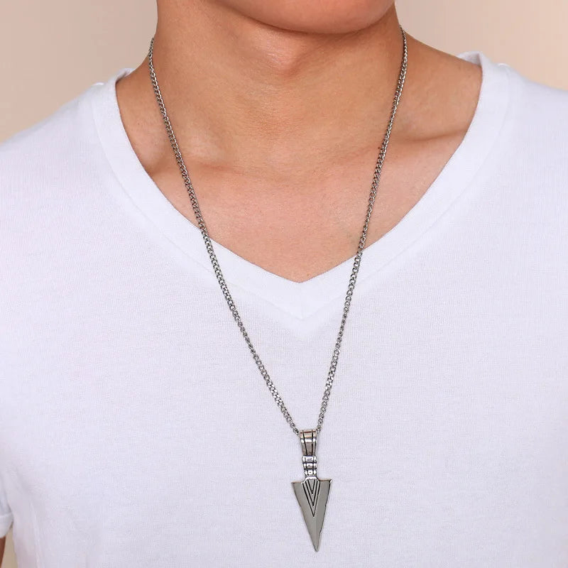 Arrow Tag Necklace, Stainless Steel V Chevron Pendant Men Dainty Jewelry