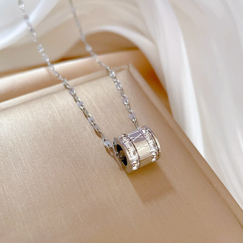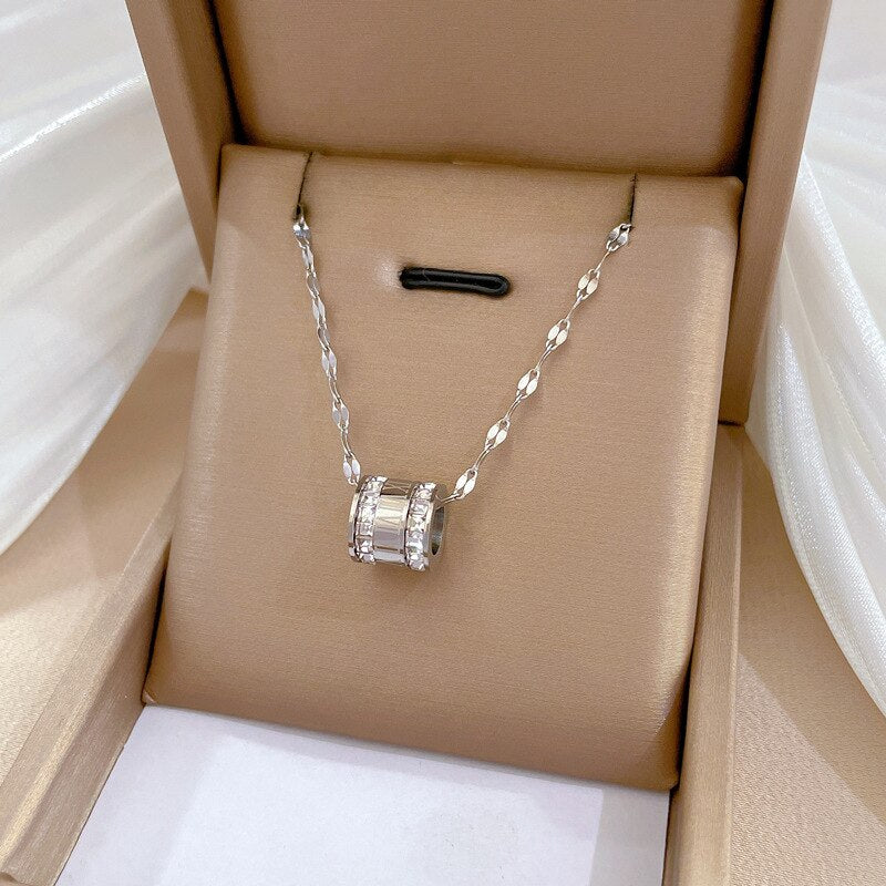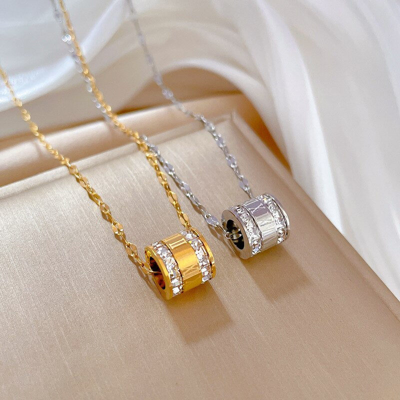 585 Gold Jewelry-Titanium Steel Artificial Diamond Not Fade Color Circle Pendant Necklaces For Women Gold Neck Chain Jewelry Gift for Girl
