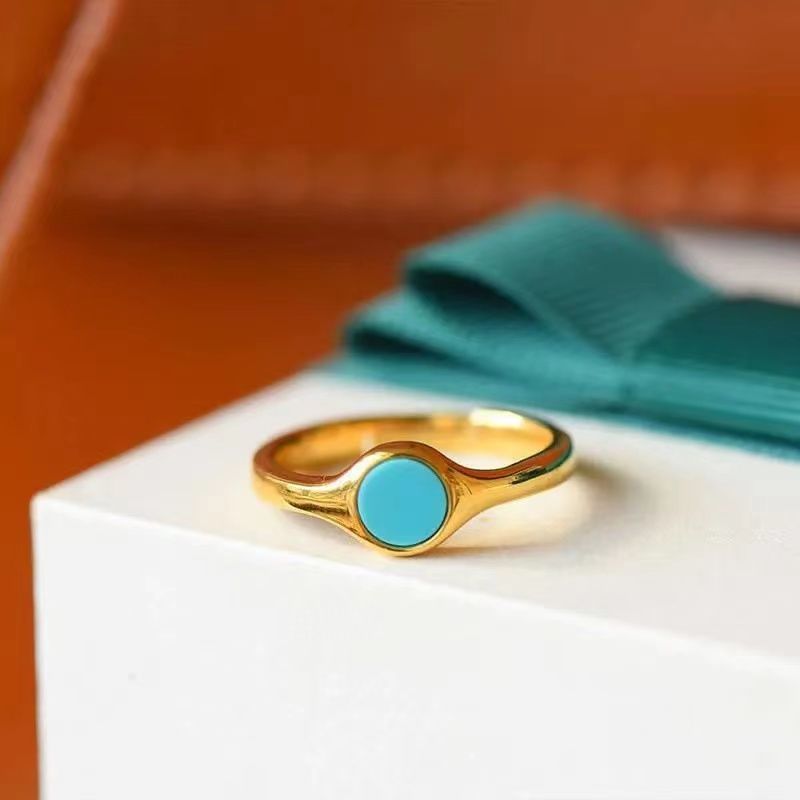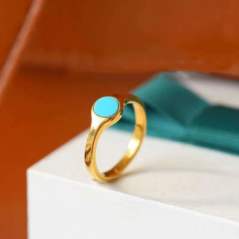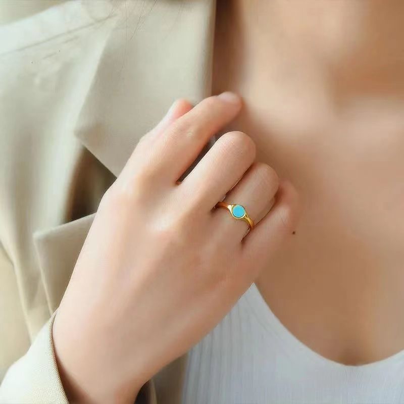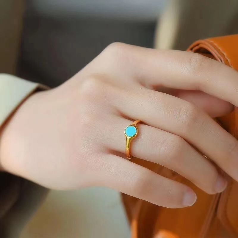 Rings-Autumn new style inlaid blue turquoise opening adjustable ring beautiful personality exquisite ladies silver jewelry