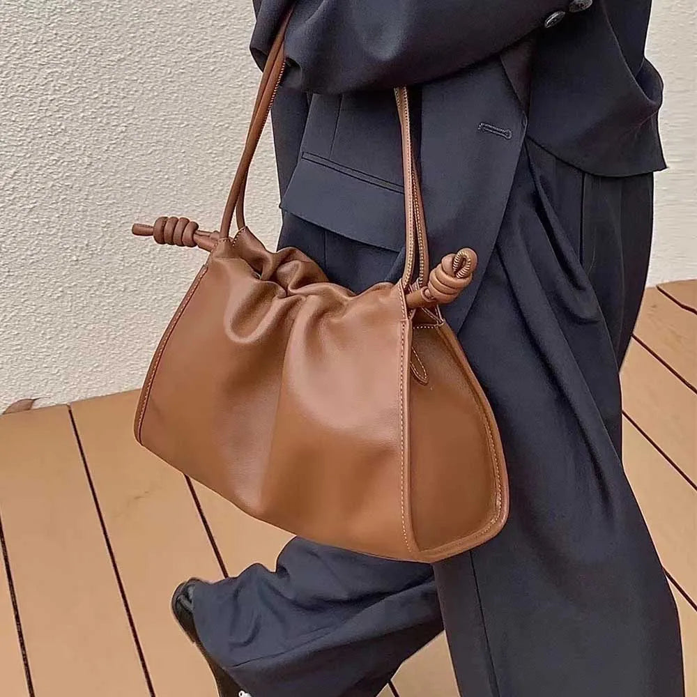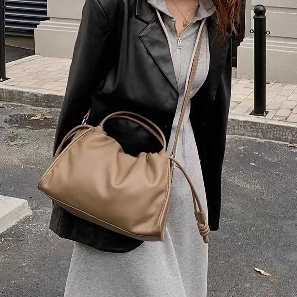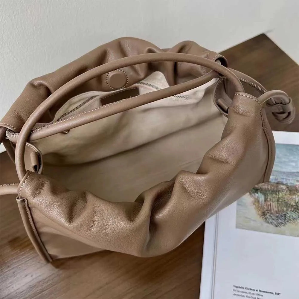 MS Autumn New Women Leather Shoulder Bags Cross Body Luxury Cowhide Lady Daily Purses Fashion Soft Cloud Bags Chic Tote