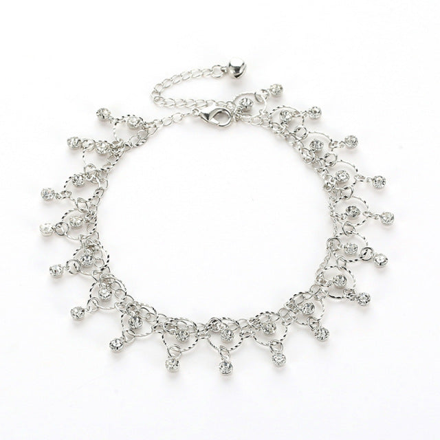Anklets- Beach Anklet Rhinestone Tassel Foot Leg Bracelet Women's Fashion Jewelry Vintage Yoga Ankle Bracelet Chain Barefoot Sandals